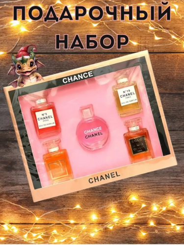 Волшебная коробка, полная великолепных ароматов, как звездное небо в теплый летний вечер. В этом наборе вы найдете подборку из пяти прекрасных парфюмов, каждый из которых словно отдельный музыкальный аккорд в гармонии женской красоты. Сладкие ноты фруктов утонченно переплетаются с изысканными цветочными сочетаниями, создавая несравненные ароматы, стойкие и утонченные.Каждый флакон символизирует маленькую каплю роскоши и элегантности, характерной для модного дома Chanel. Коко Шанель №5 и №9, шедевры парфюмерии из Франции, придают вашему облику неповторимое очарование и шарм. А Chanel Modemoiselle раскрывает перед вами всю палитру чувственности и женственности.