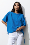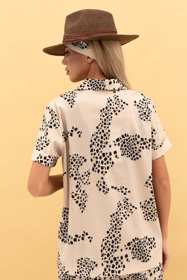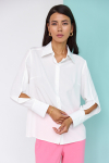 Блуза свободного силуэта с застёжкой на пуговицы из вискозной ткани. Втачной короткий рукав с отворотом. Вырез горловины оформлен английским воротником, который визуально сделает фигуру стройнее и подчеркнет красивую линию груди. В комплекте пояс из основной ткани.