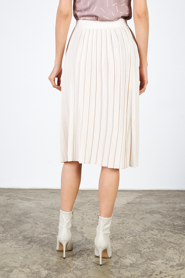 Юбка плиссе с притачным поясом. Изделие выполнено из шелковистой вискозной пряжи.