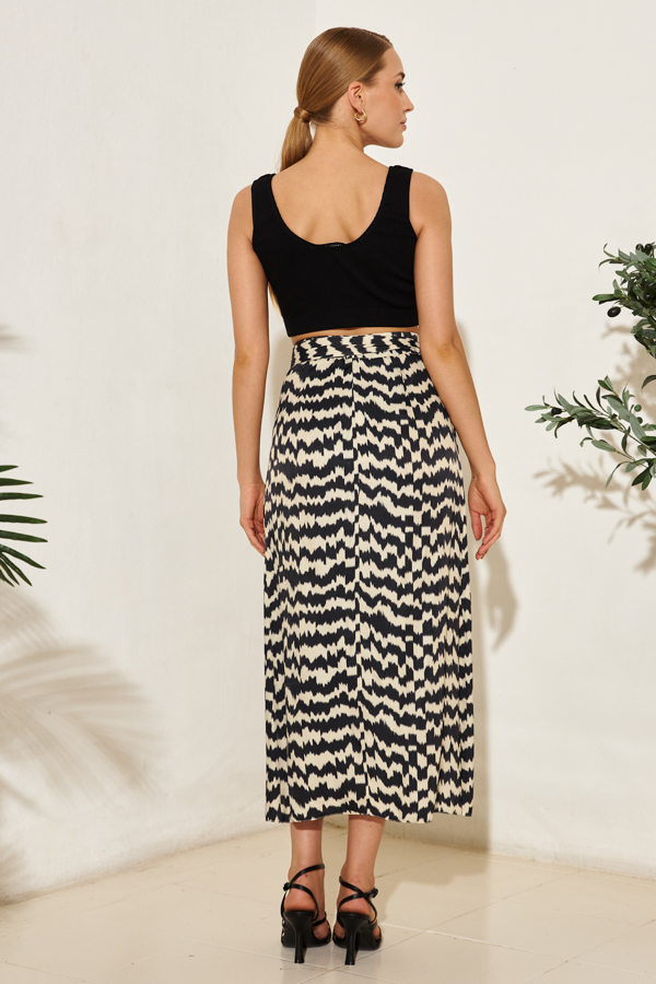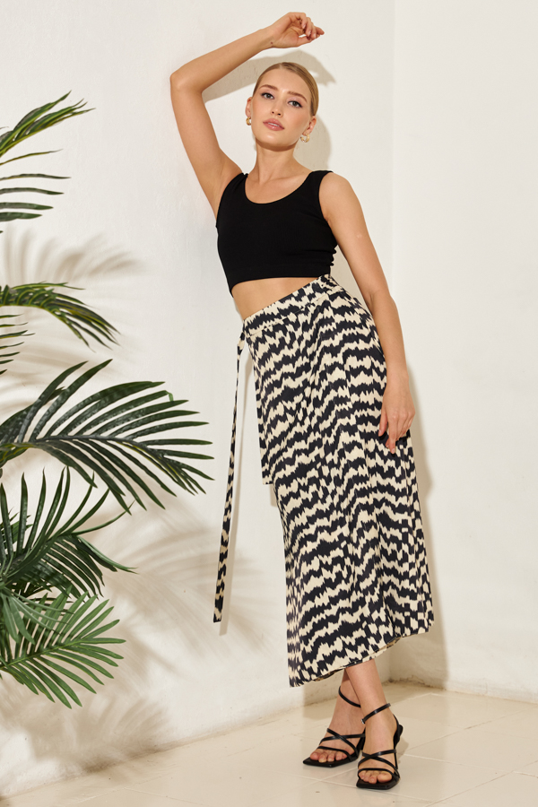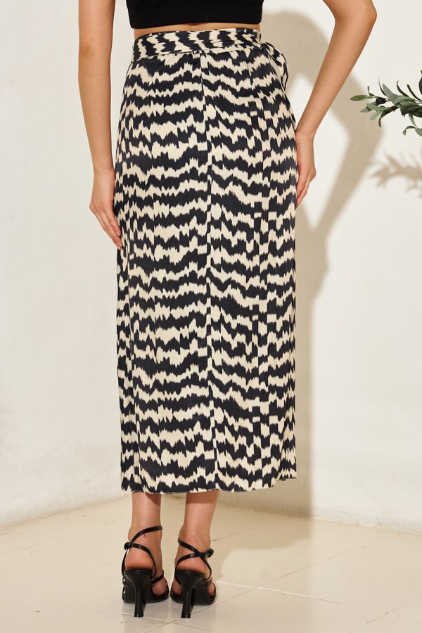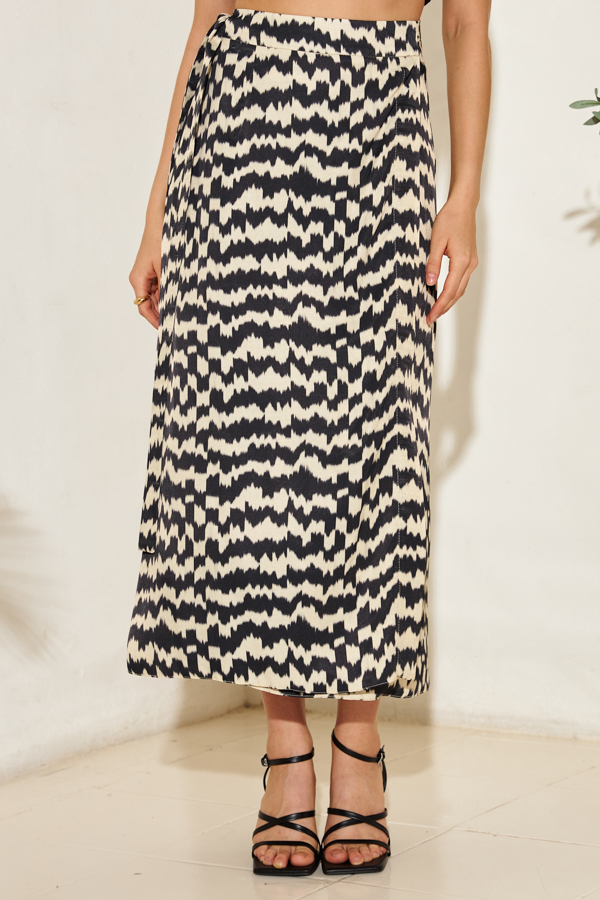 Юбка с запахом на широких завязках из вискозной ткани с сатиновым блеском. Прямой силуэт с притачным поясом. Изделие с запахом не только выглядят интересно, но и делают фигуру более гармоничной.