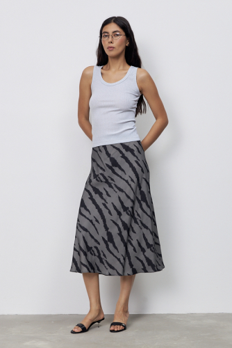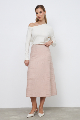 Юбка из плательной ткани, расширенная книзу. Сзади по среднему шву застёжка-молния. Изделие без пояса, верхний срез обработан обтачкой. Юбка на притачной подкладке.