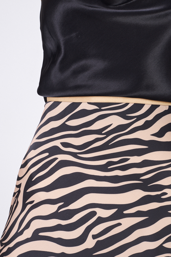 Юбка, слегка расширенная книзу из атласной ткани. Крой юбки по косой, на линии талии скрытая резинка.
