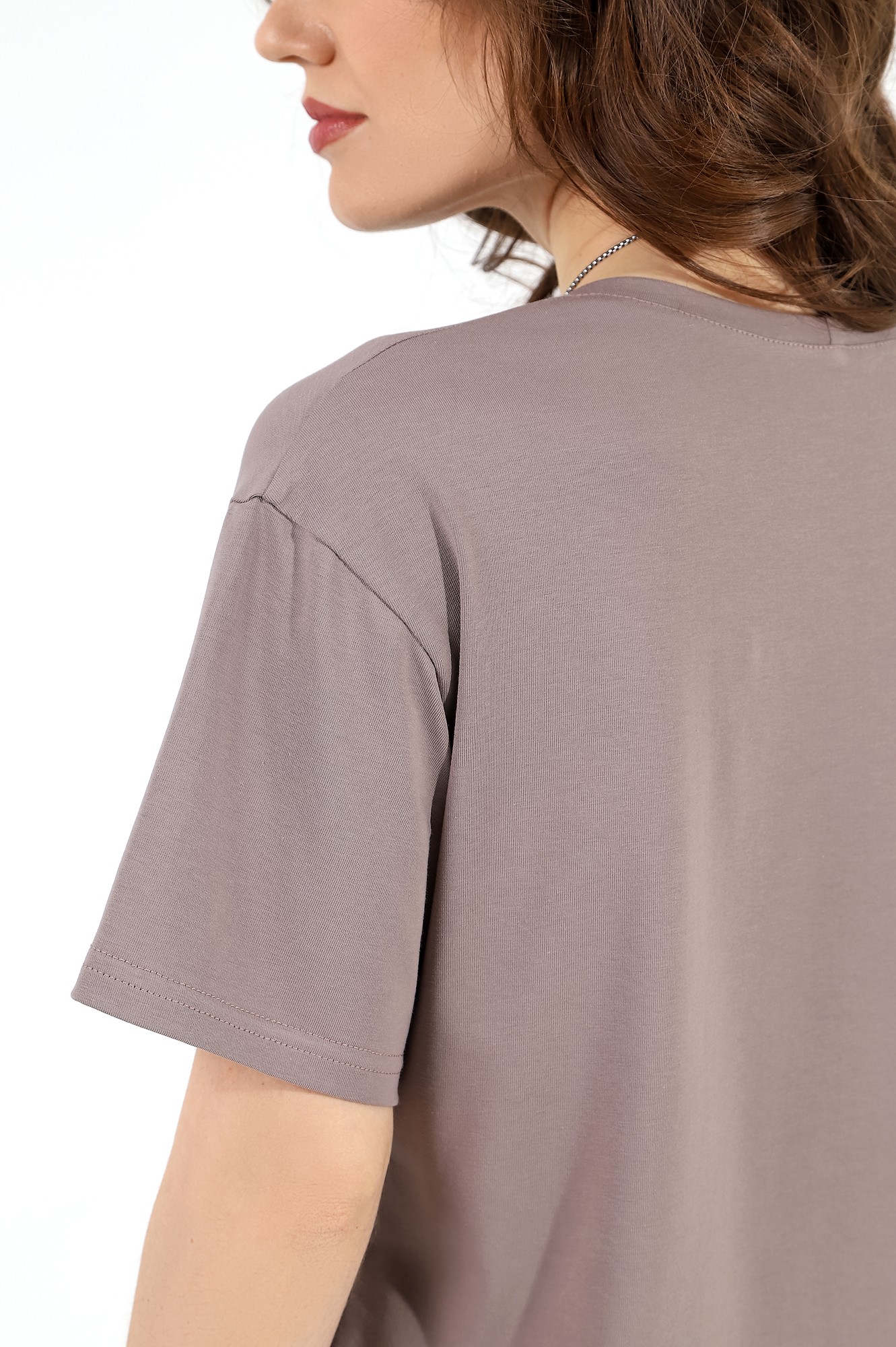 Футболка из гладкокрашеного трикотажного полотна «кулирка с лайкрой», классического покроя, с короткими втачными рукавами, горловиной овальной формы, обработанной втачной планкой.