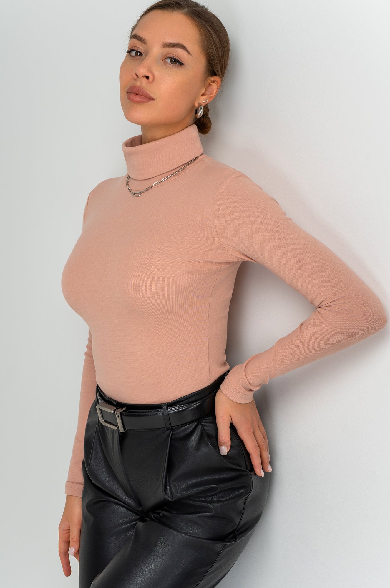 Женский трикотажный лонгслив с высокой горловиной прекрасно подчеркнёт фигуру и подойдёт для капсульного гардероба. Однотонный бадлон для женщин станет удачным выбором для повседневных образов или стиля smart casual.