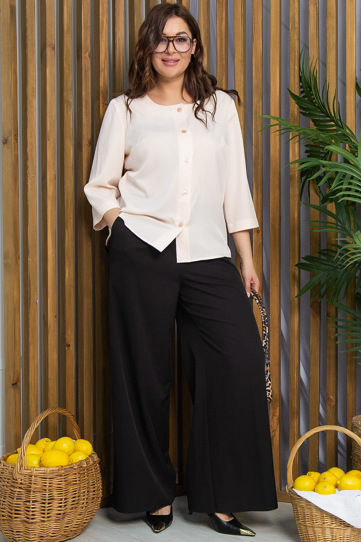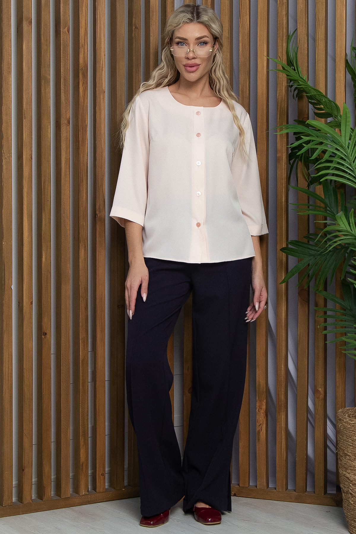 Изящная блузка полуприлегающего силуэта в персиковом оттенке  — это идеальный выбор для любого события! Она выполнена из тонкой и лёгкой ткани, которая струится, создавая лёгкость и воздушность. Поверхность матовая, слегка рельефная, что придаёт ей неповторимый шарм.