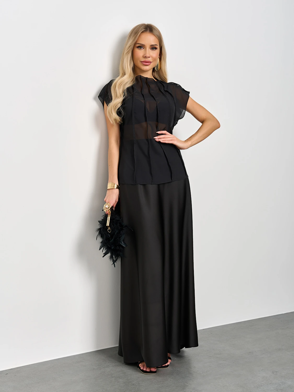 Блуза из шифона с декоративными вертикальными отстрочками по всему изделию.