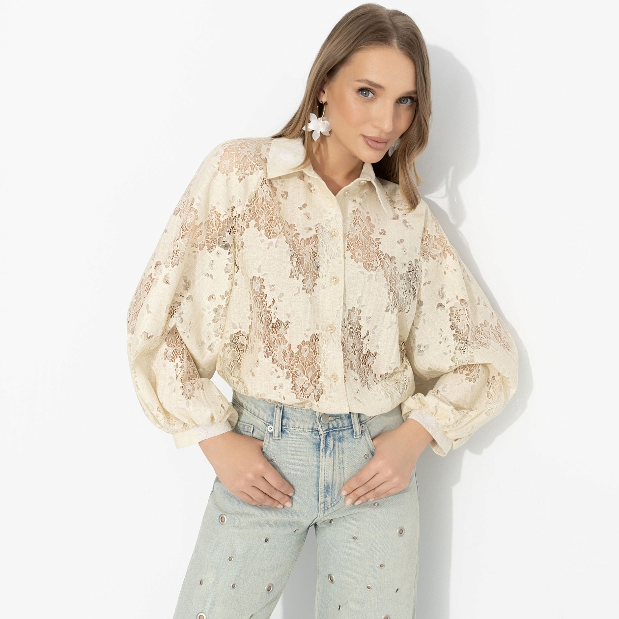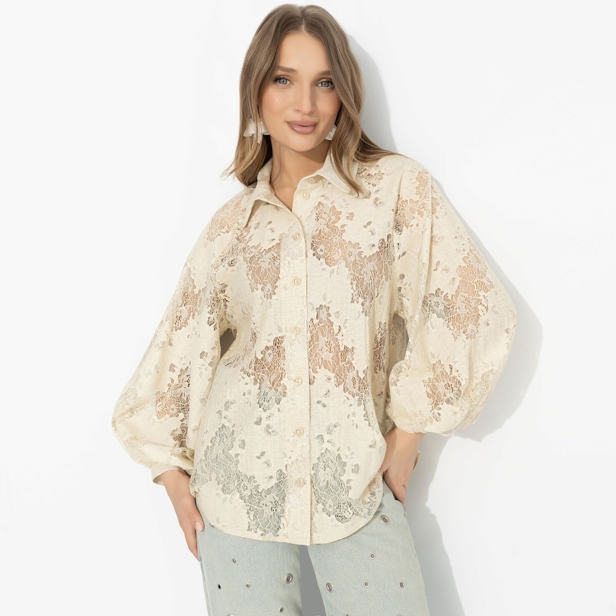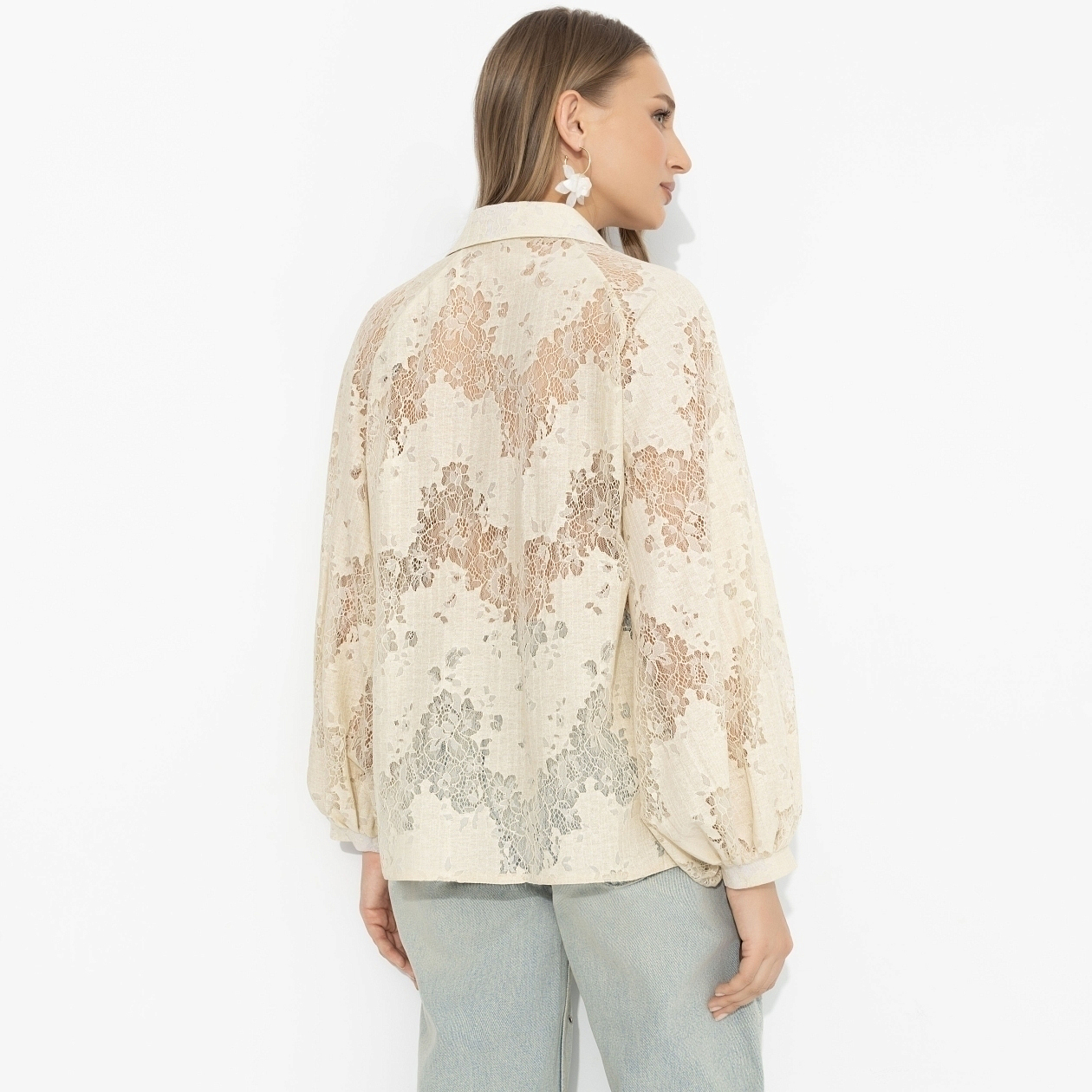 Поздний вечер, тёплый свет, разговоры становятся чуть тише. Ты сидишь напротив, слушаешь – и ловишь на себе его взгляд дольше обычного. Не из-за усилий, а из-за этого мягкого айвори и тонкой игры фактур. Романтика без наигранности – как сцена, в которой всё происходит само. Гипюр с вискозой даёт лёгкость и глубину, не утяжеляя образ. Полупрозрачность добавляет интригу, поэтому базовый слой под ней работает особенно красиво. Сюда не нужны сложные сочетания – всё уже сказано.
