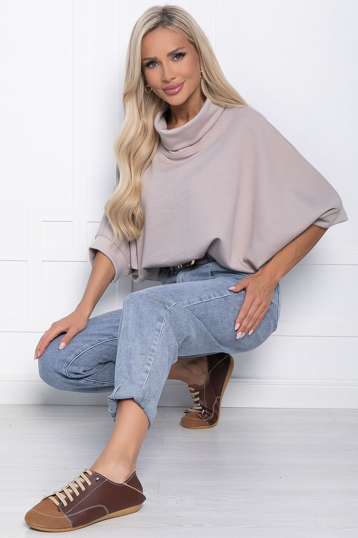 Самые непредсказуемые ансамбли и живописные образы позволяет создать джемпер, вписывающийся в самые разнообразные стили. Удобное, практичное, функциональное изделие позволит сочетать его с разнообразным низом, а мягкий трикотаж подарит комфорт в прохладную погоду. Джемпер имеет акцентную горловину, а рукава скроены по типу «Летучая мышь». Свободный крой позволит скрыть недостатки фигуры.