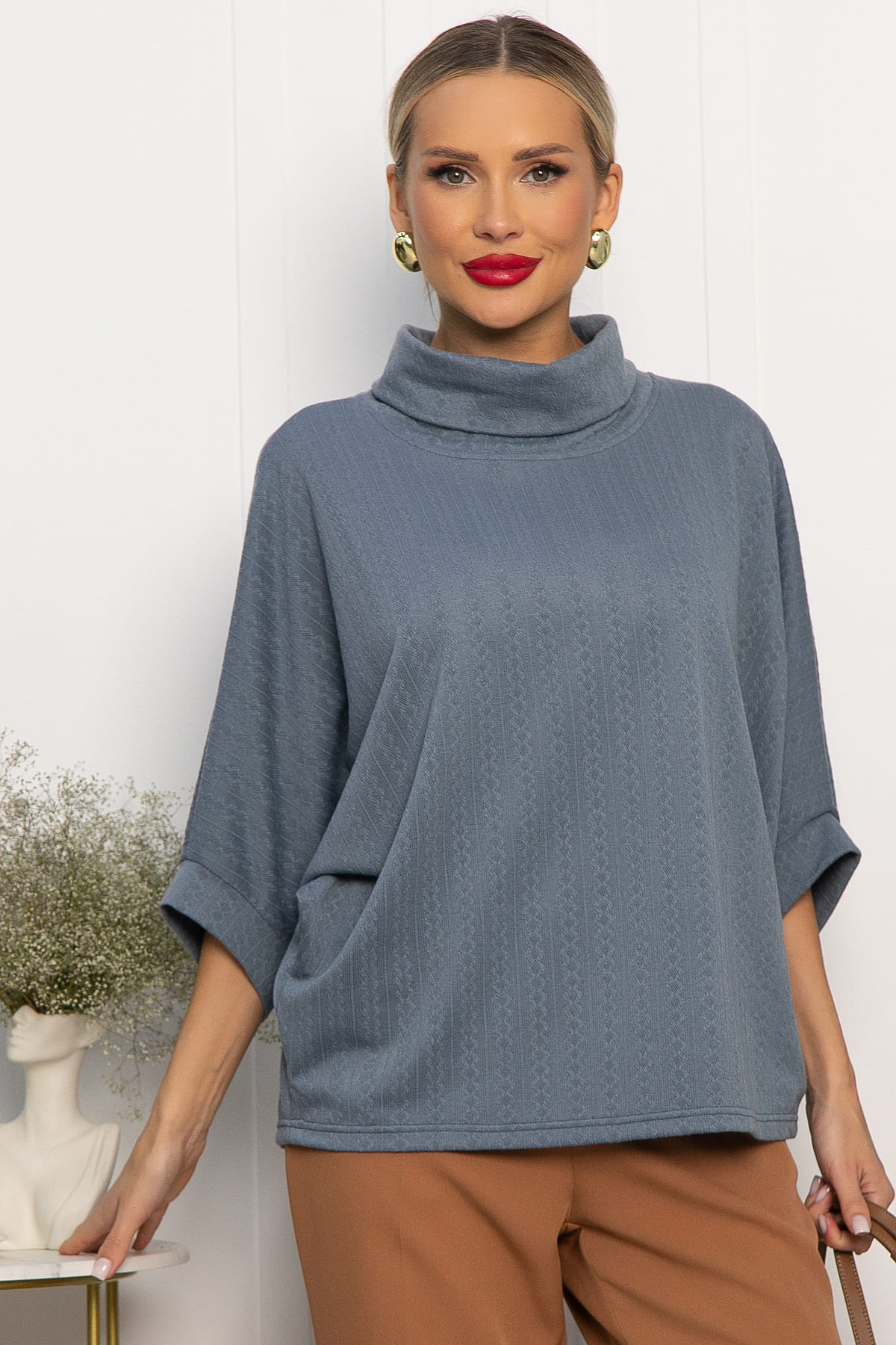 Самые непредсказуемые ансамбли и живописные образы позволяет создать джемпер, вписывающийся в самые разнообразные стили. Удобное, практичное, функциональное изделие позволит сочетать его с разнообразным низом, а мягкий трикотаж подарит комфорт в прохладную погоду. Джемпер имеет акцентную горловину, а рукава скроены по типу «летучая мышь». Свободный крой позволит скрыть недостатки фигуры.