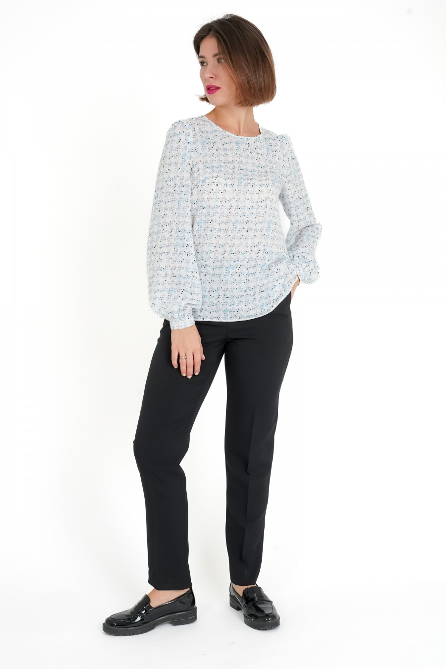 Блуза BL 21-3160 бело-голубая