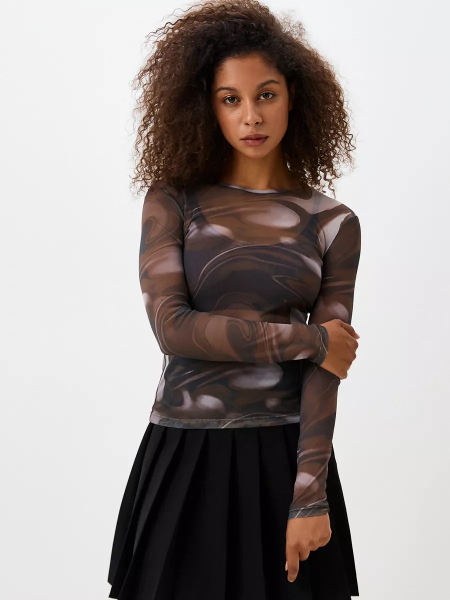 Облегающий лонгслив из прозрачной сетки — идеальный выбор для стильных образов в духе Y2K. Легкая стрейчевая ткань дарит комфорт и свободу движений, а полупрозрачная фактура делает топ идеальным для весны и лета. Принт, вдохновлённый корейскими дорамами, подчёркивает индивидуальность. Базовый крой подходит девушкам любого роста и легко вписывается в повседневный гардероб. Фабричное качество обеспечивает долговечность: ткань остаётся упругой даже после множества стирок. Отличное дополнение к модному образу!