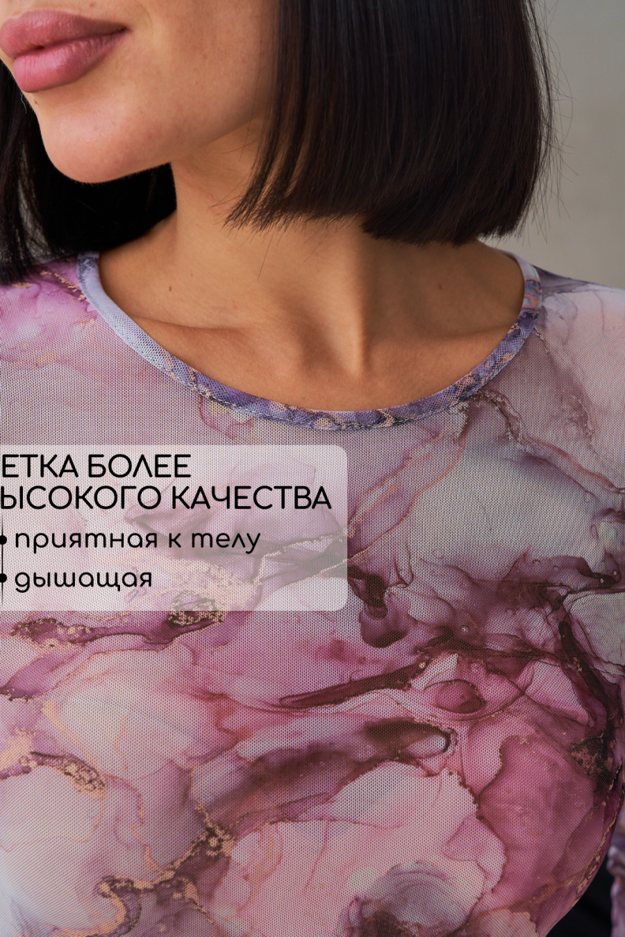 Облегающий лонгслив из прозрачной сетки — идеальный выбор для стильных образов в духе Y2K. Легкая стрейчевая ткань дарит комфорт и свободу движений, а полупрозрачная фактура делает топ идеальным для весны и лета. Принт, вдохновлённый корейскими дорамами, подчёркивает индивидуальность. Базовый крой подходит девушкам любого роста и легко вписывается в повседневный гардероб. Фабричное качество обеспечивает долговечность: ткань остаётся упругой даже после множества стирок. Отличное дополнение к модному образу!