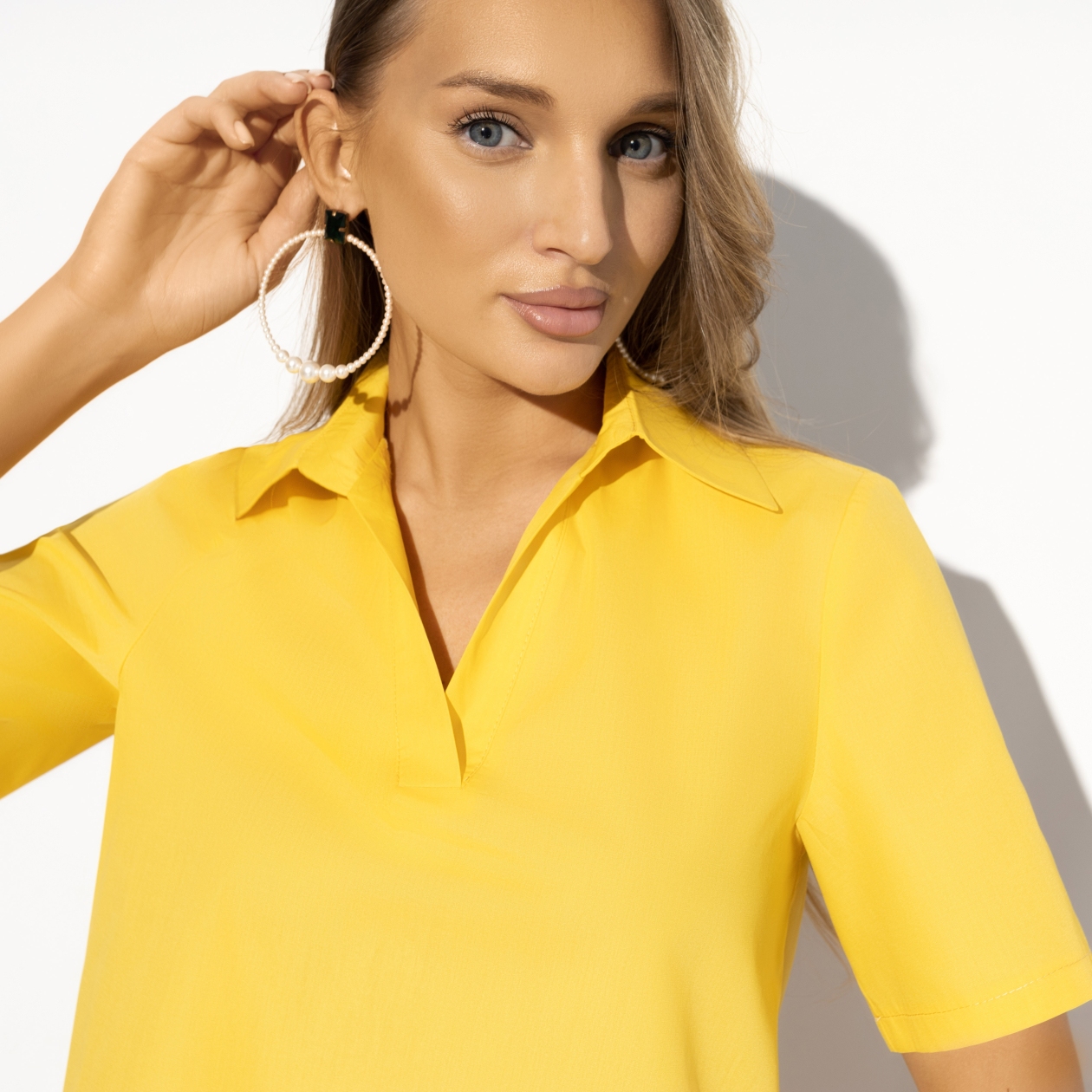 Сочный желтый цвет этой блузы — не просто выбор, это утверждение стиля и индивидуальности. Он придает особый акцент вашему образу, делая его заметным и запоминающимся. Носите эту блузу, чтобы подчеркнуть свою яркую и энергичную натуру.
