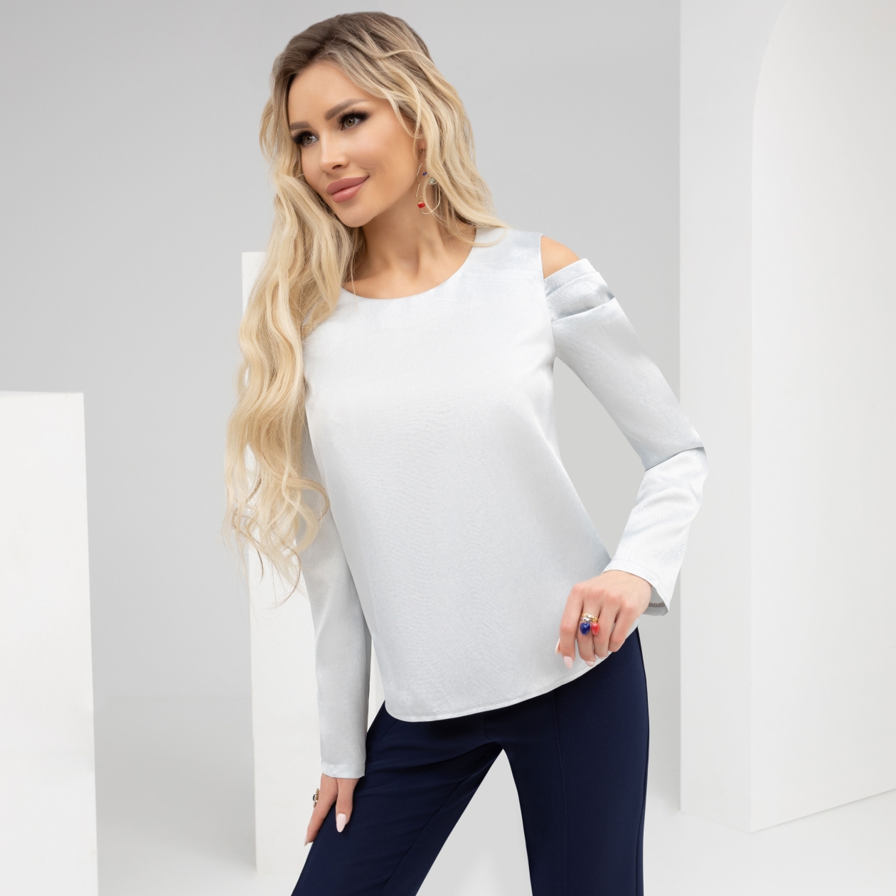 Витаем в облаках! Вместе. На одной модной волне. Прямой крой, вырезы на плечах. Мы не забываем про тренды. И добавляем щепотку фантазии. Блуза сочетается как с брюками, так и с юбкой. Просто надень!
