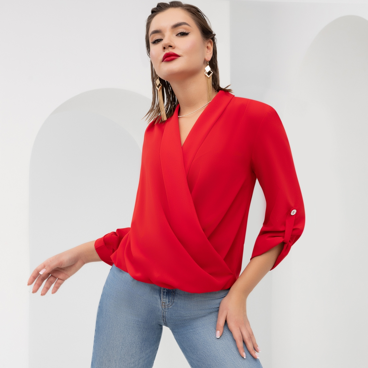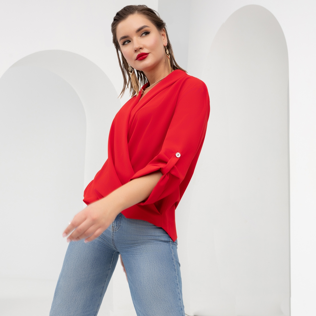 Заяви о себе! Комфортная блуза ярчайшего оттенка не оставит шансов. Вы будете выделяться в любой обстановке. Но дело не только в цвете. Сложный дизайн, интересные формы. Акцент на запястья. Больше, чем просто вещь.