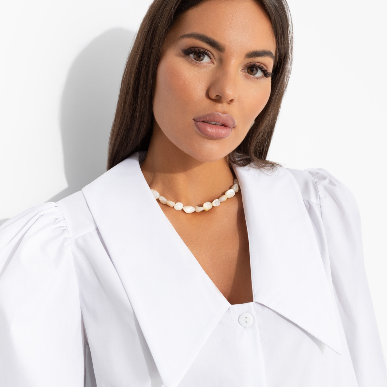 Её линия жизни безупречна – пятёрки в дневнике, красный диплом, стремительная карьера. Блуза ЧАРУТТИ словно символ этого пути. Каждая складка на ткани лежит идеально, словно её путь – ровный и продуманный. Когда она входит в переговорную, все понимают: перед ними – человек, у которого не бывает помарок, ни в отчётах, ни в образах. Блуза прямого силуэта с объемными рукавами-фонариками. Застегивается на пуговицы. Изделие хорошо смотрится на любом типе фигуры.