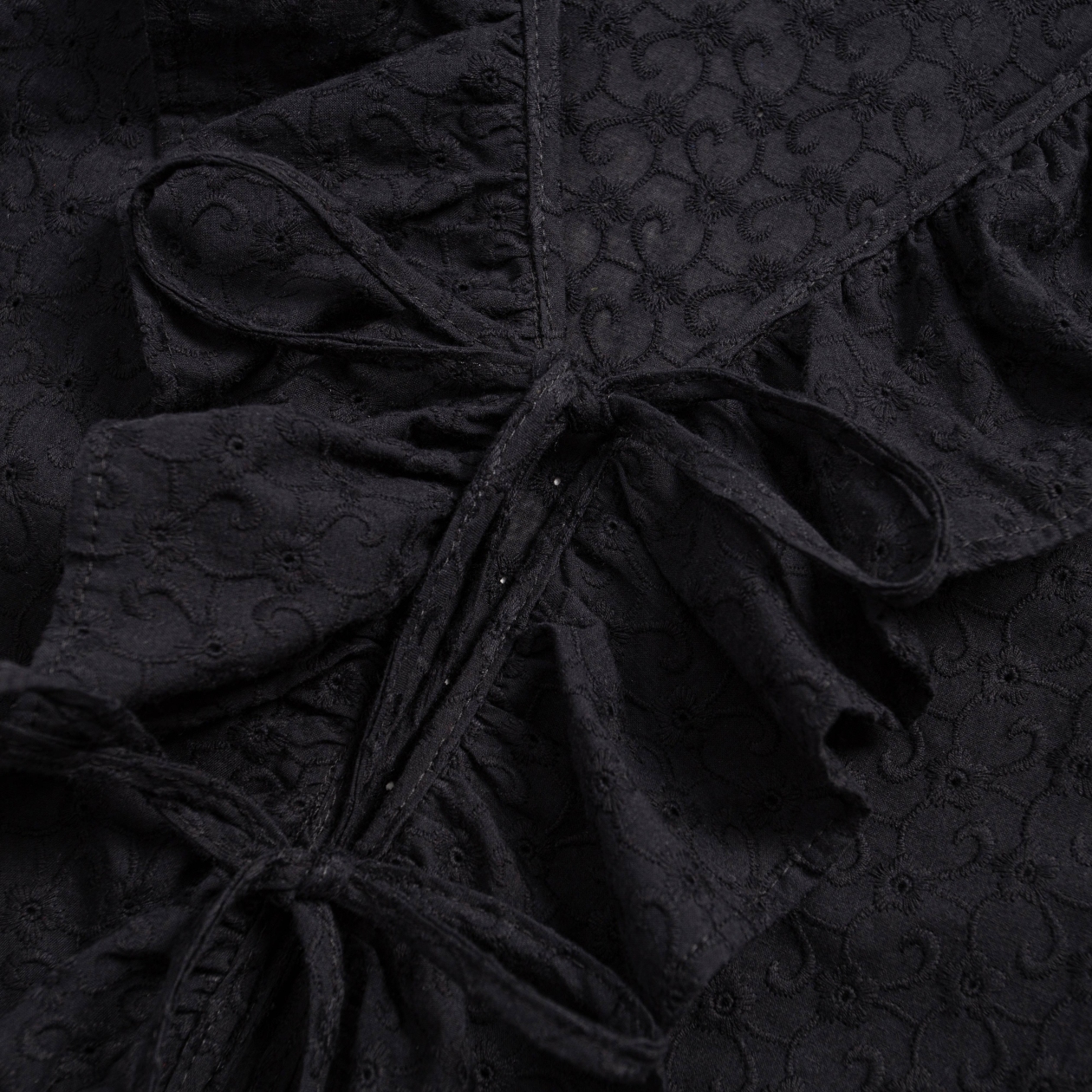 Тренд сезона – завязки, как у Ganni, плюс щедрая порция рюш и объемные рукава. Не просто блуза, а приглашение к кокетству: немного богемы, немного французской легкости, и максимум женственности. 100% хлопок, вышитый поплин с фактурным узором, рюши по краю и трендовые завязки на груди и рукавах. Свободный крой с акцентом на декольте – идеально для тех, кто ценит стиль, который точно сработает.