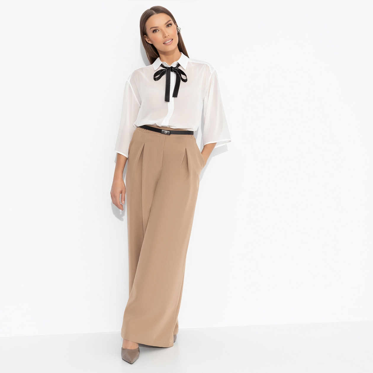 Блуза ЧАРУТТИ – это строгий, но изящный кодекс деловой женщины, где власть и женственность идут рука об руку. Она – профессионал, но есть детали, которые добавляют ей ноту элегантной дерзости, будто тонкий намёк на то, что правила можно переписывать. Блуза ЧАРУТТИ создана для женщины, которая управляет процессами, не теряя изящества. Блуза свободного кроя. Материал изделия слегка просвечивает. Акцент в виде съемной ленты контрастного цвета в зоне ворота. Изделие хорошо смотрится в заправленном виде и навыпуск.