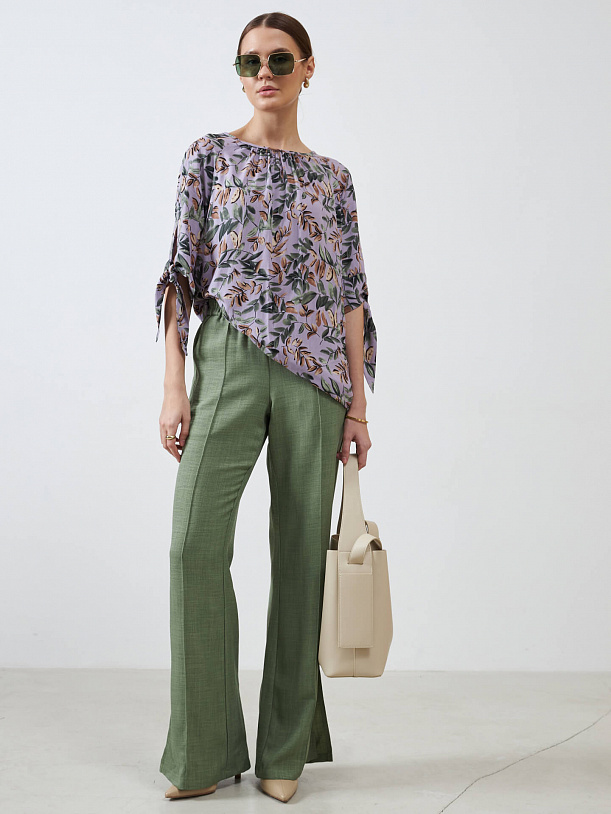 Эта блуза идеально сочетается с нашими брюками из коллекции, арт.40624-2, создавая гармоничный комплект. Нежные оттенки цветочного принта гармонично сочетаются с зеленым цветом брюкам, подчеркивая ваш безупречный вкус. Добавьте в свой гардероб утонченность, комфорт и стиль с этой блузой, и вы будете готовы к любому поводу – от повседневных встреч до особых мероприятий.