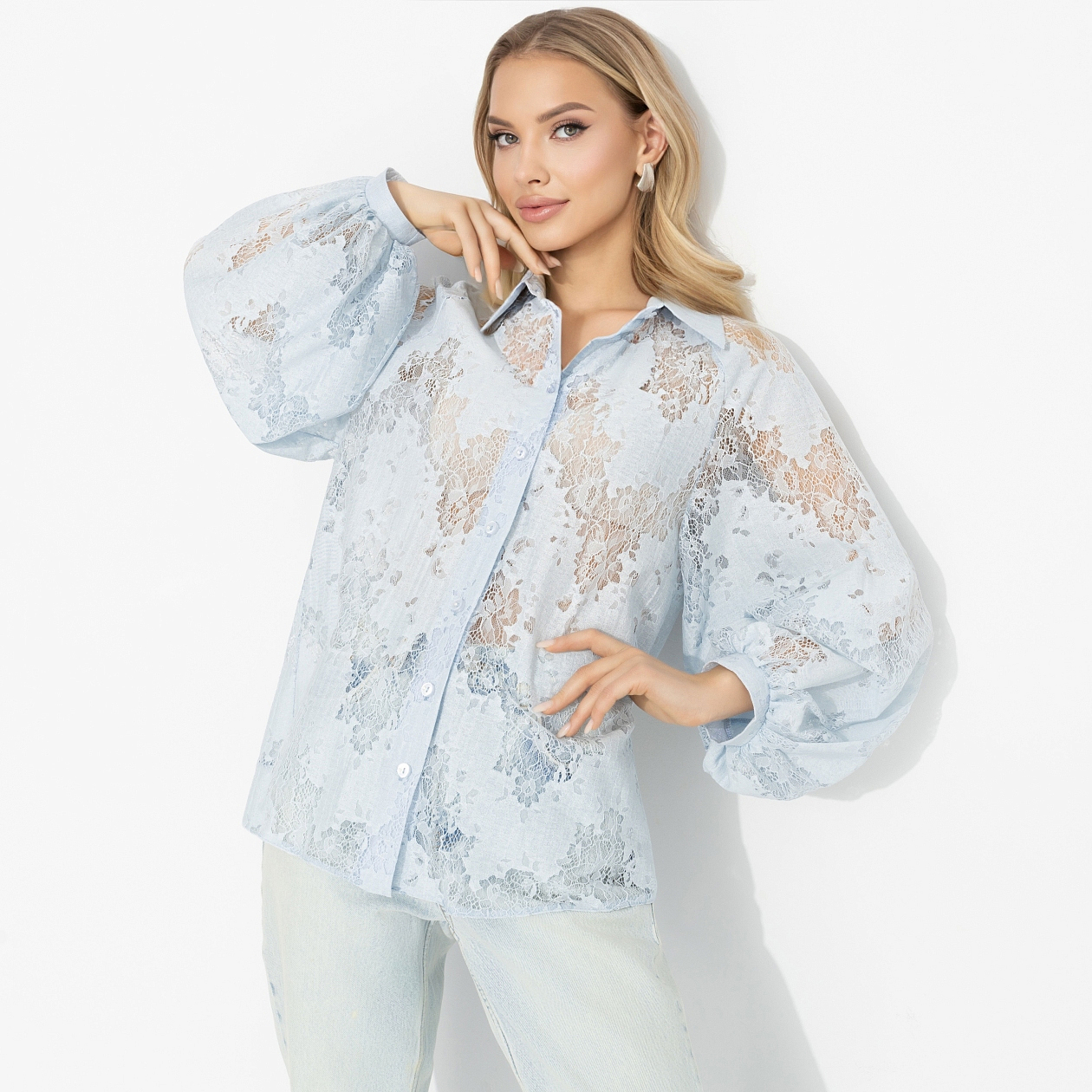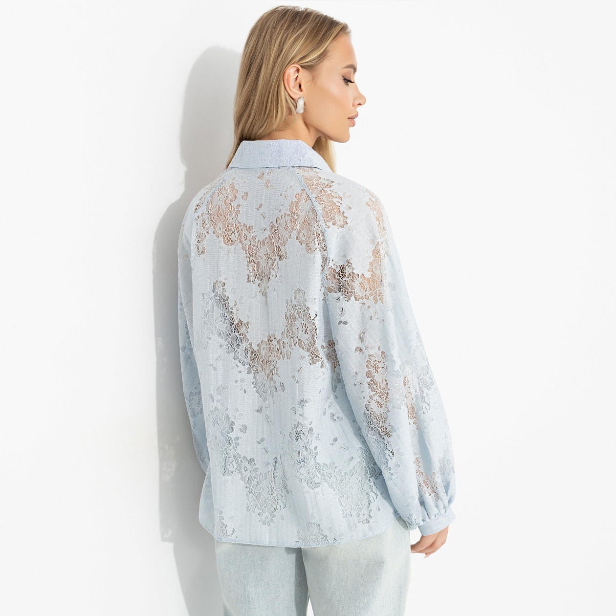 В теории красоты есть гипотеза, что взгляд задерживается не на ярком, а на сложном – там, где есть воздух, глубина и недосказанность. На свидании это работает безотказно. Ты садишься напротив, и сначала – общий силуэт, потом – рисунок, потом – этот свежий голубой... Свободный крой не фиксирует фигуру. Лёгкая прозрачность добавляет интереса, но сохраняет баланс – именно то, на чём и держится притяжение.