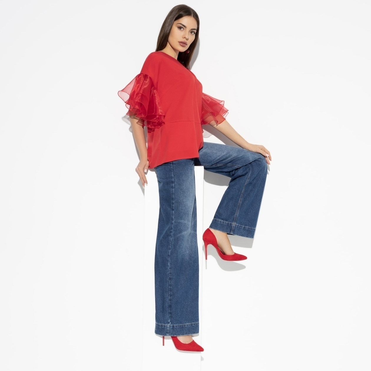 Красный – фаворит дизайнеров в этом сезоне. Модели Gucci, Isabel Marant, Self-Portret были полностью облечены в красный. Если total-look для вас пока слишком, блуза в сочетании с синими джинсами – самый лучший вариант.