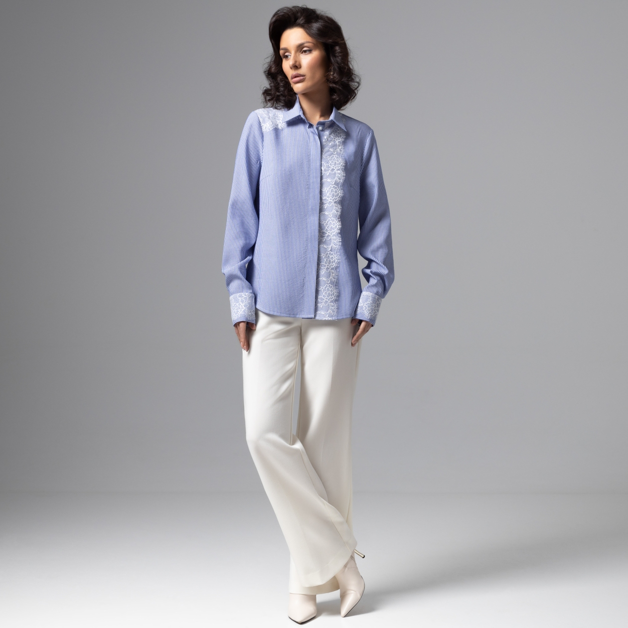 Деловой стиль может быть изящным. Блуза CHARUTTI – доказательство гармоничного сосуществования кружева и рубашечной ткани. Нотка нежности в официозе образа. Безупречные швы, продуманный крой и фурнитура высшего качества для лучших сценариев вашей жизни. Блуза классического кроя. Дополнена тонким кружевом из премиальной коллекции. Широкие манжеты. Линия пуговиц скрыта.