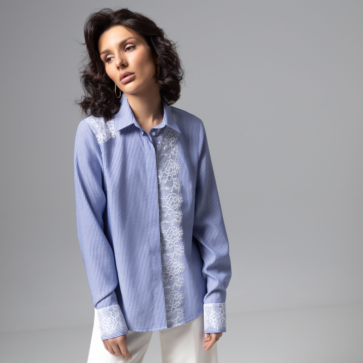 Деловой стиль может быть изящным. Блуза CHARUTTI – доказательство гармоничного сосуществования кружева и рубашечной ткани. Нотка нежности в официозе образа. Безупречные швы, продуманный крой и фурнитура высшего качества для лучших сценариев вашей жизни. Блуза классического кроя. Дополнена тонким кружевом из премиальной коллекции. Широкие манжеты. Линия пуговиц скрыта.