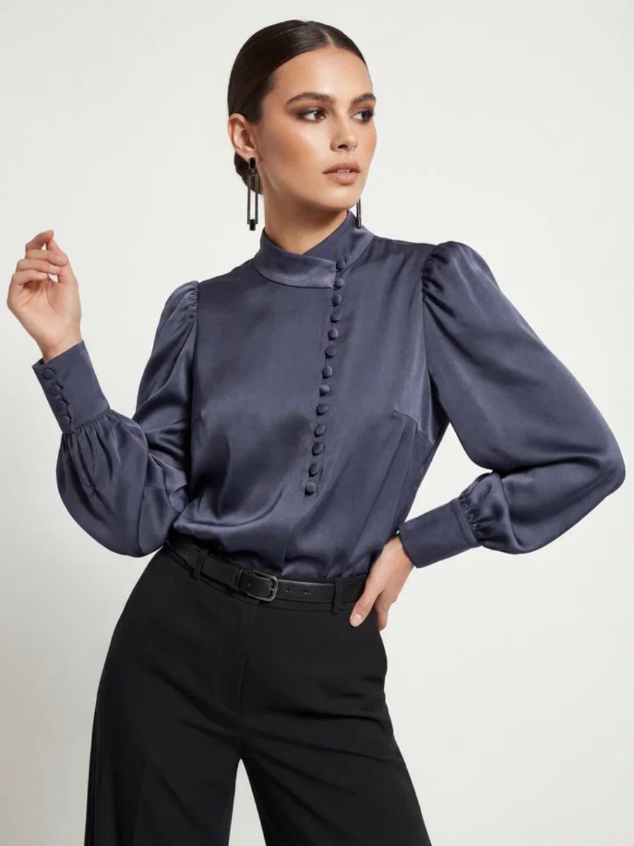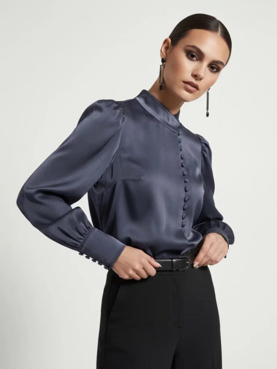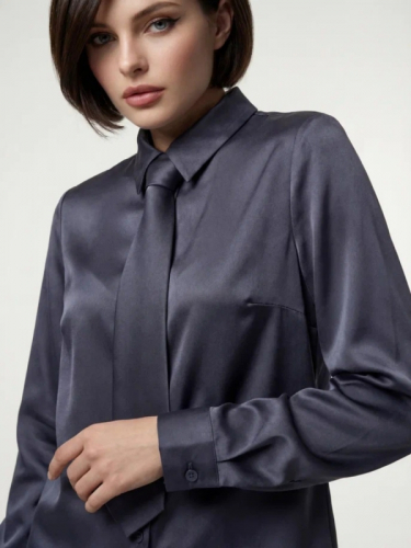 Представляем элегантную блузу-косоворотку OD-550-19 в глубоком графитовом оттенке – настоящую находку для вашего ассортимента.Эта модель выгодно выделяется своим уникальным дизайном: высокий воротник-стойка и асимметричный ряд изящных пуговиц создают выразительный акцент, отсылающий к традиционной русской рубахе, но в современном прочтении. Объемные рукава-буффы на высоких манжетах добавляют изделию особого шарма и женственности, делая его идеальным выбором как для делового гардероба, так и для вечерних выходов.Мы используем высококачественную шелковистую ткань, которая прекрасно держит форму, приятна к телу и обеспечивает безупречный внешний вид. Наши дизайнеры тщательно проработали лекала, гарантируя идеальную посадку и комфорт. Полный цикл собственного производства позволяет нам контролировать каждый этап – от конструирования до пошива, обеспечивая неизменно высокое качество.Преимущества для ваших клиентов:Актуальный дизайн: Модель сочетает классику и современные тренды.Высокое качество материалов: Ткань приятна на ощупь и износостойка.Универсальность: Легко комбинируется с юбками, брюками и джинсами.Привлекательность для покупателя: Элегантный и статусный вид.Включив эту блузу в свой ассортимент, вы предложите покупателям не просто одежду, а предмет гардероба, который подчеркнет их индивидуальность и чувство стиля. Это гарантированный успех продаж и высокая маржинальность для вашего бутика или шоурума.