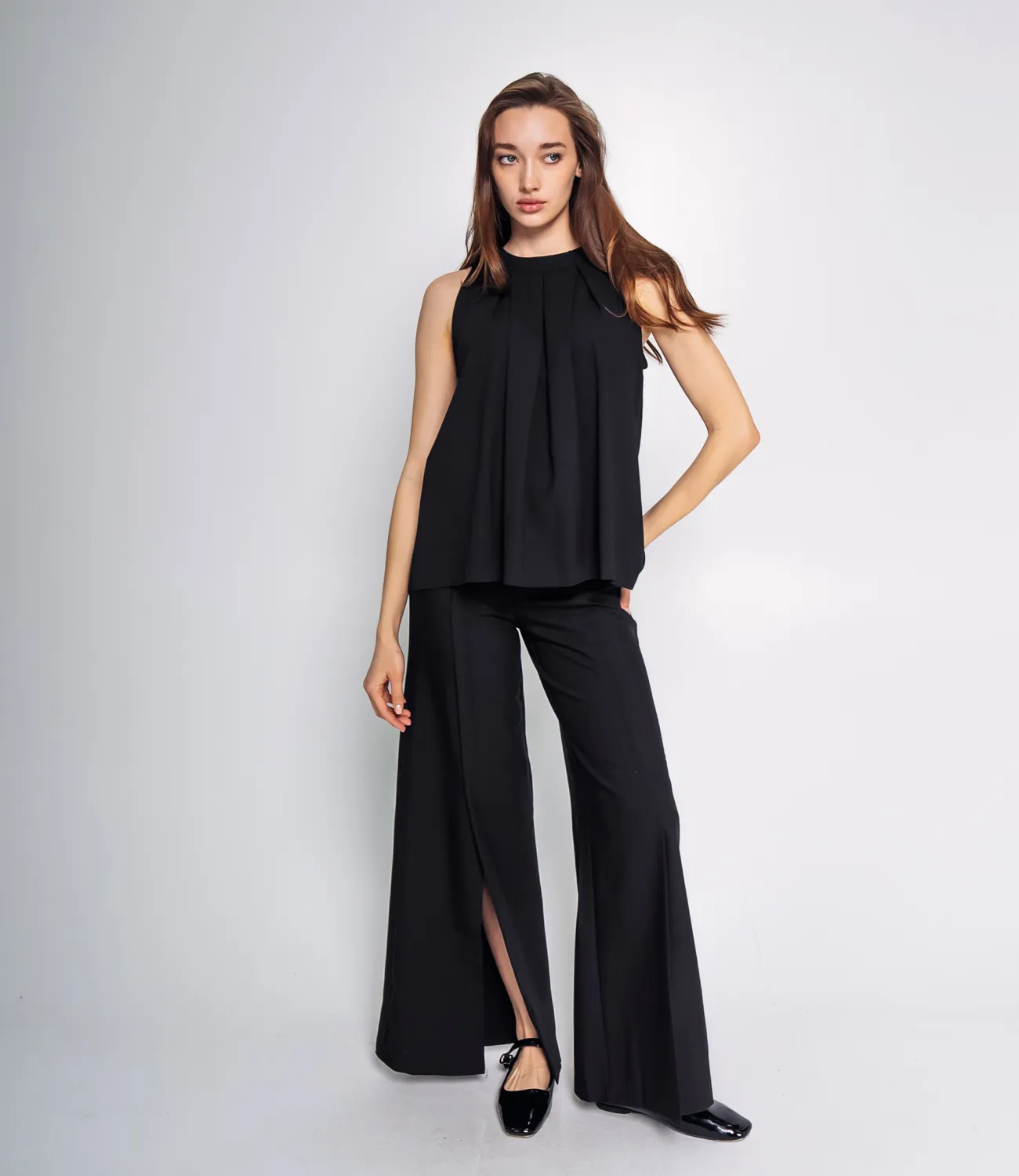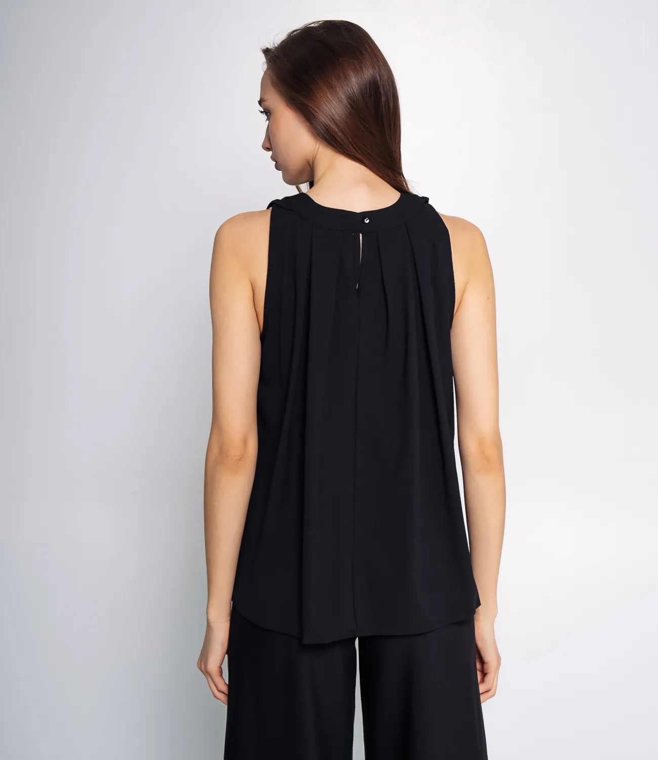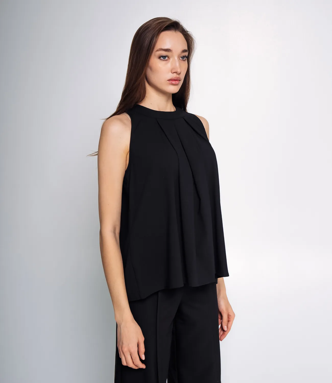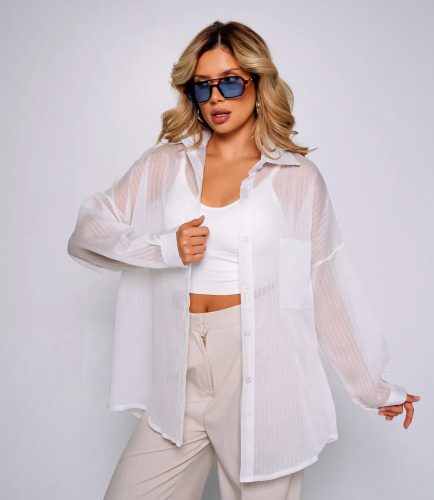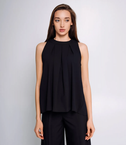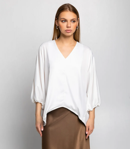 Эта модель блузы имеет свободный крой, создавая непринужденный и удобный стиль. На спине находится пуговица, добавляющая интересный акцент и уникальность в дизайне. Короткий рукав обеспечивает легкость и воздушность, идеально подходя для теплых времен года. Небольшие сборки, идущие от выреза, придают блузе дополнительный объем и текстуру, при этом подчеркивая естественную красоту и женственность. Рост модели 168 см., 85-63-92.