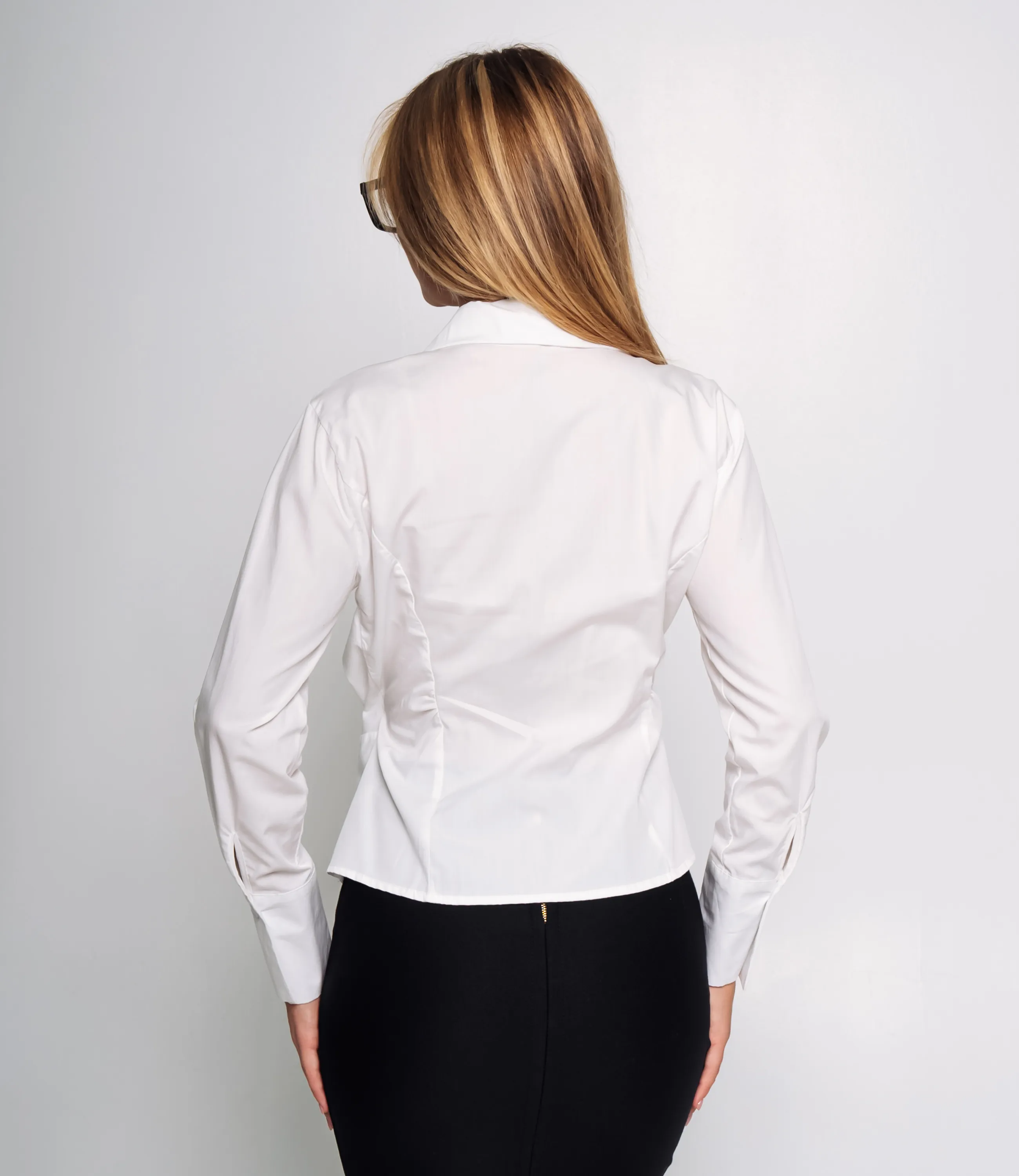 Блуза — это незаменимый элемент гардероба, который подчеркнет индивидуальность и стиль каждой женщины. Эта прекрасная модель, выполненная из 80% полиэстера и 20% хлопка, отличается легкостью, создавая воздушный и нежный образ. Блуза с запаховым V‑образным вырезом и отложным рубашечным воротником с мягкими лацканами имеет перекрещивающуюся переднюю деталь, формирующую узловую складку на уровне талии и создающую горизонтальные и косые драпировки; лиф выполнен с уменьшением объёма в талии за счёт встречных клиньев, что придаёт приталенность и подчёркивает силуэт. Не упустите возможность предложить своим клиентам эту удивительную блузу, которая добавит в их гардероб стиль и элегантность. Подарите вашим покупателям возможность чувствовать себя уверенно и привлекательно в любой обстановке!