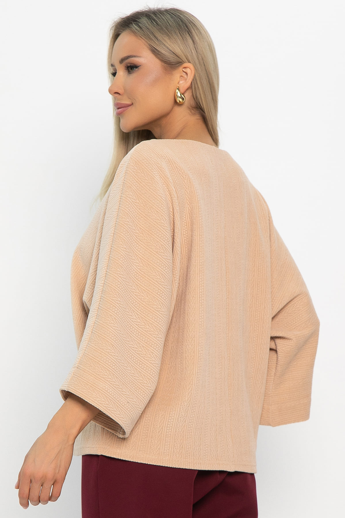 Ваше идеальное решение для воплощения стильных, удобных и повседневных образов! Эта вещь станет незаменимой благодаря своей универсальности и возможности создавать комфортные и модные ансамбли. Округлый вырез горловины — это классика, подходящая для всех, которая выгодно подчеркивает изящество шеи. Особое внимание заслуживают рукава, выполненные в стиле «летучая мышь». Такая модная интерпретация не только придает блузе современный вид, но и обеспечивает невероятную свободу движений.