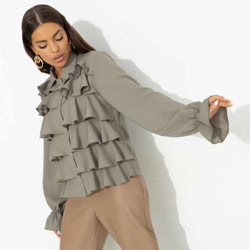 Идеальная для вечерних выходов, эта женская блуза с воланами станет незаменимой частью вашего гардероба. Комфортный крой и изысканный дизайн делают её подходящей как для торжественных мероприятий, так и для романтических встреч. Блуза женская нарядная вечерняя подчеркнёт ваш стиль и привлечёт внимание окружающих. Прекрасный выбор для тех, кто стремится быть в центре внимания. Покупая эту блузку женскую оптом, вы получаете возможность создать множество впечатляющих ансамблей.