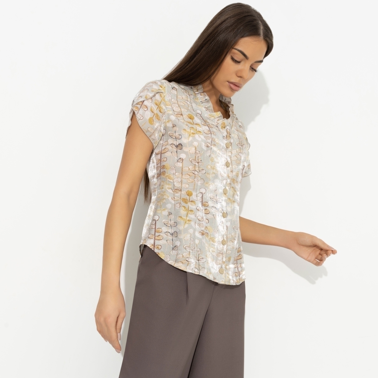 В главных ролях – вы и ваш возлюбленный. Директор по костюмам – CHARUTTI. Действие разворачивается в тихом парке небольшого европейского городка. Он смотрит на вас влюбленными глазами. Вы в блузе CHARUTTI с романтичным принтом. Идут титры. Happy end. Блуза приталенного силуэта, плотно садиться по фигуре. Рекомендуем выбирать размер с учетом свободы прилегания. Изделие застёгивается на пуговицы. Ткань с жемчужным блеском. Обратите внимание, что модель маломерит на два размера.