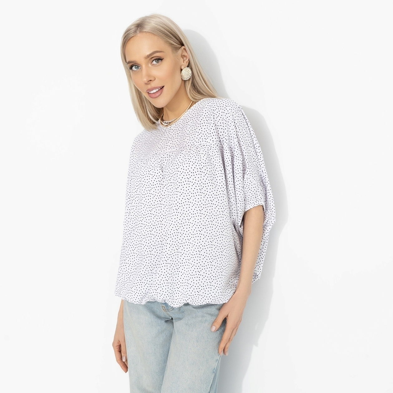 Романтичный наряд – лучший выбор на каждый день. Особенно когда он стартует с лёгкой блузы ЧАРУТТИ и заканчивается прогулкой, которую никто не планировал. Ветер играет тканью, город светится огнями, а настроение как в любимой мелодраме. Блуза свободного силуэта из ткани «ниагара». Спущенная линия плеча, мягкий округлый вырез, свободный рукав. Материал лёгкий, струящийся, красиво ложится по фигуре и приятен к телу.И всё только начинается.