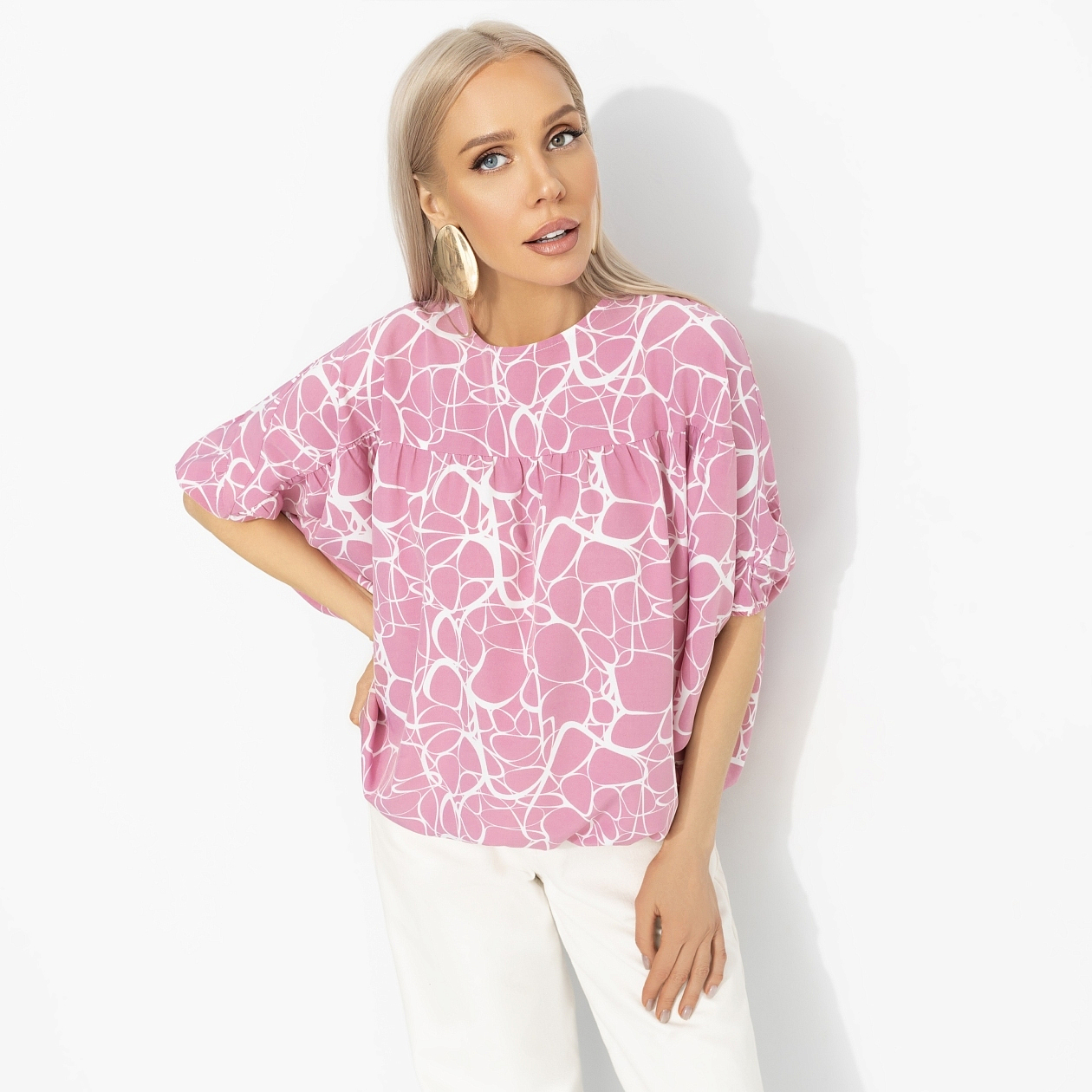 Всё начинается с мечты об отпуске. Сначала – картинки Лазурного берега, мечты о шуме волн и тёплом ветре с моря. А потом в гардеробе появляется блуза ЧАРУТТИ – лёгкая, воздушная, будто уже знает маршрут к солнцу. Блуза свободного силуэта из ткани «ниагара». Материал лёгкий, струящийся, красиво ложится по фигуре и приятен к телу. Ощущение отпуска появляется еще до покупки билетов.