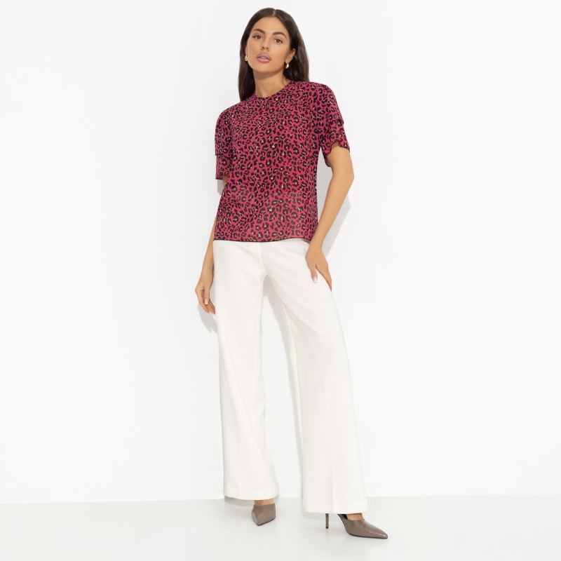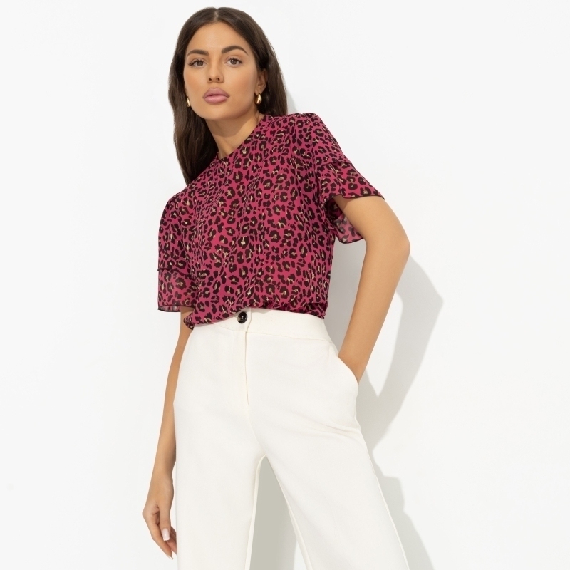 Идеальный выбор для тех, кто хочет быть хищницей, но не в джунглях, а на коктейльной вечеринке. Леопардовый принт кричит «смотри на меня», а крой шепчет «но с уважением». Блуза прямого силуэта. Эффект многослойности на рукавах. Блуза хорошо смотрится в заправленном виде и навыпуск.