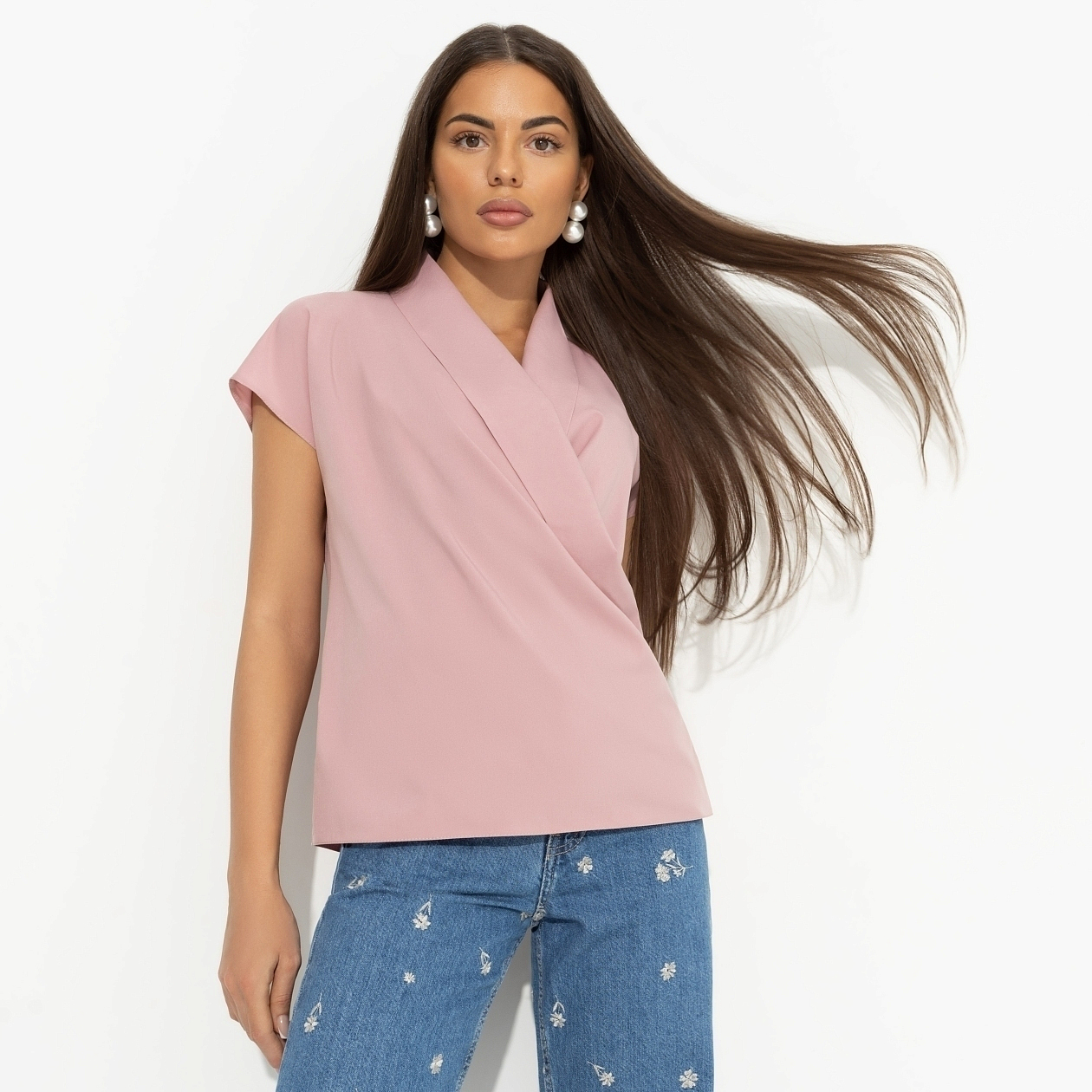 Блуза с драпировкой на запах, На пике изящества (розовая)