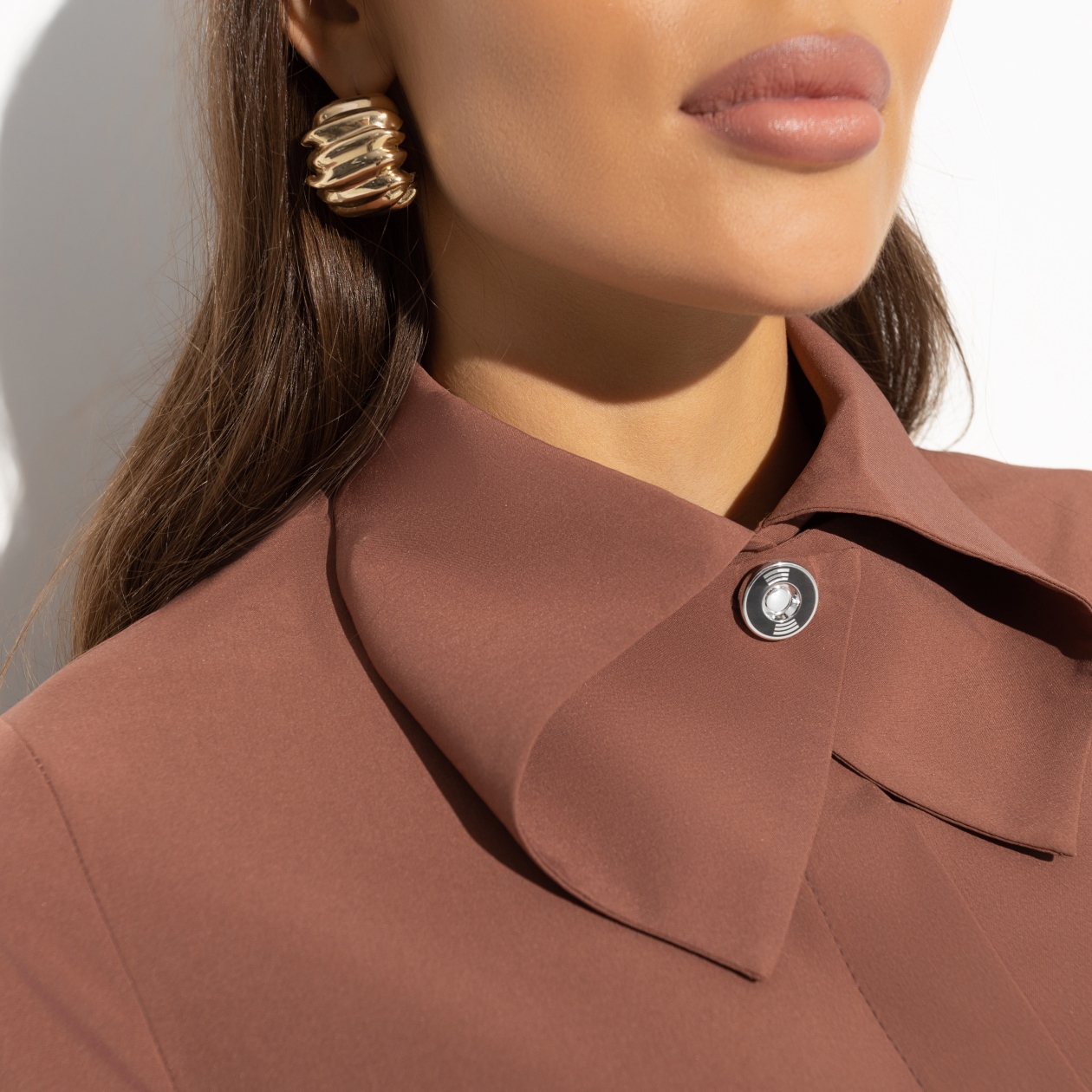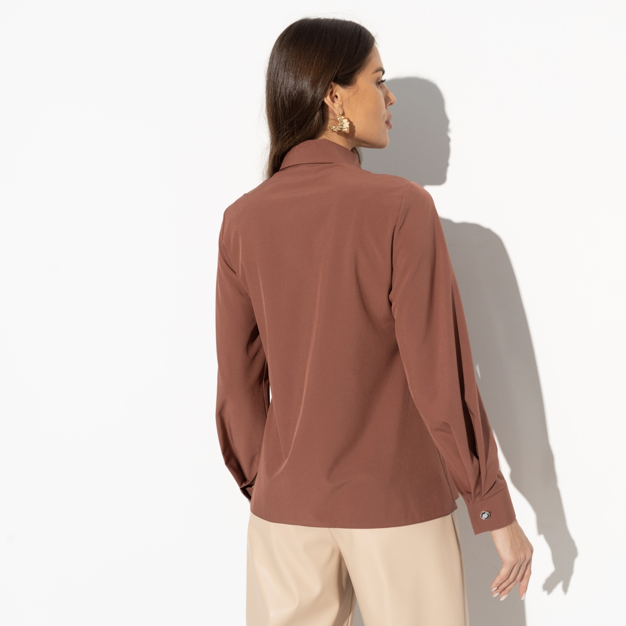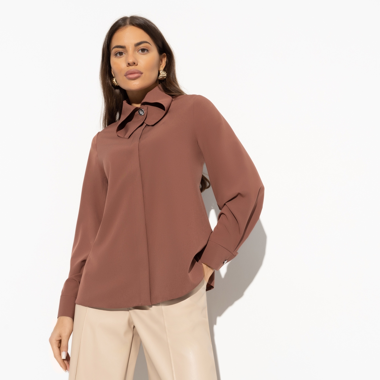 Путь к радостной жизни строится по принципу домино. Толкнув правильно первую кость, остальное сложится идеально автоматически. Просто выбирайте утром блузу CHARUTTI и дальше всё пойдет как по шоколадному маслу. Блуза прямого силуэта. Акцентная линия ворота. Линия пуговиц скрыта. Яркая контрастная фурнитура на рукавах и на вороте. Изделие хорошо смотрится в заправленном виде и навыпуск.