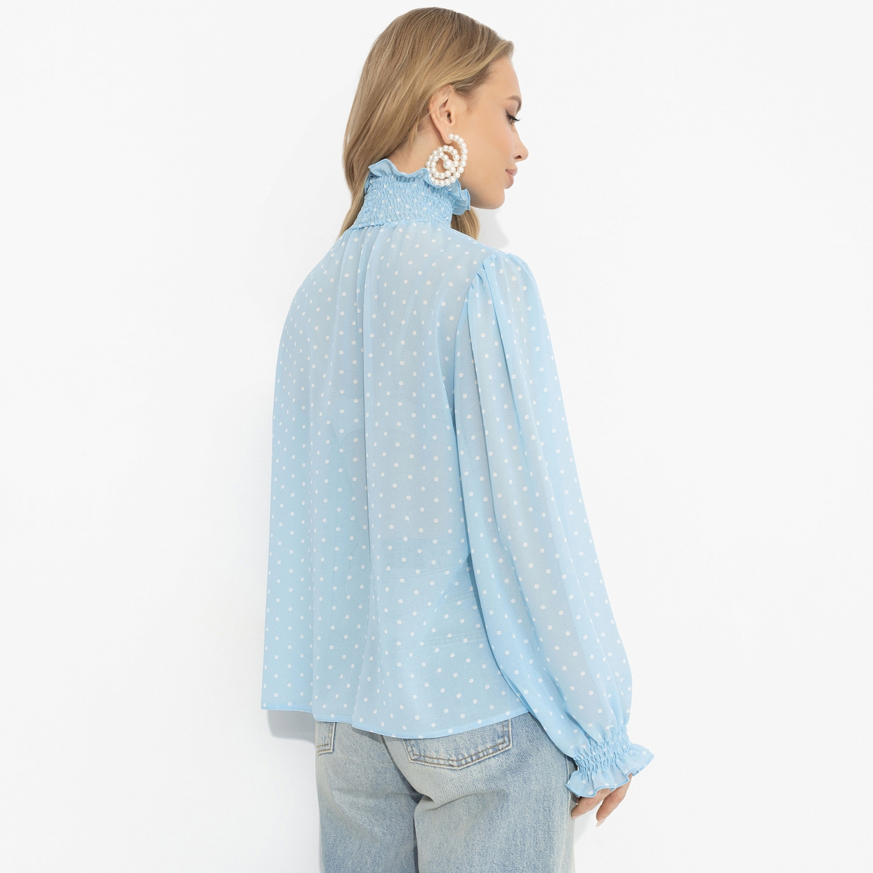 Утро, ты собираешься на встречу и ловишь тот самый лёгкий вайб «я выгляжу дорого, даже не стараясь». Голубая блуза ЧАРУТТИ будто из гардероба героини «Наследников» – сдержанная, но с характером. Воздушный шифон мягко струится, и ты уже в роли уверенной, спокойной версии себя. Свободная посадка аккуратно скрывает лишнее и подчёркивает линию плеч, кокетка добавляет структуру. Носи с джинсами, классическими брюками или юбкой – уместна и в офисе, и на встрече. Легко стилизуется и не выглядит перегруженно.