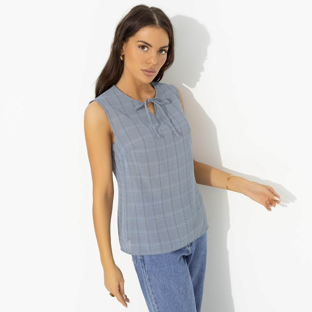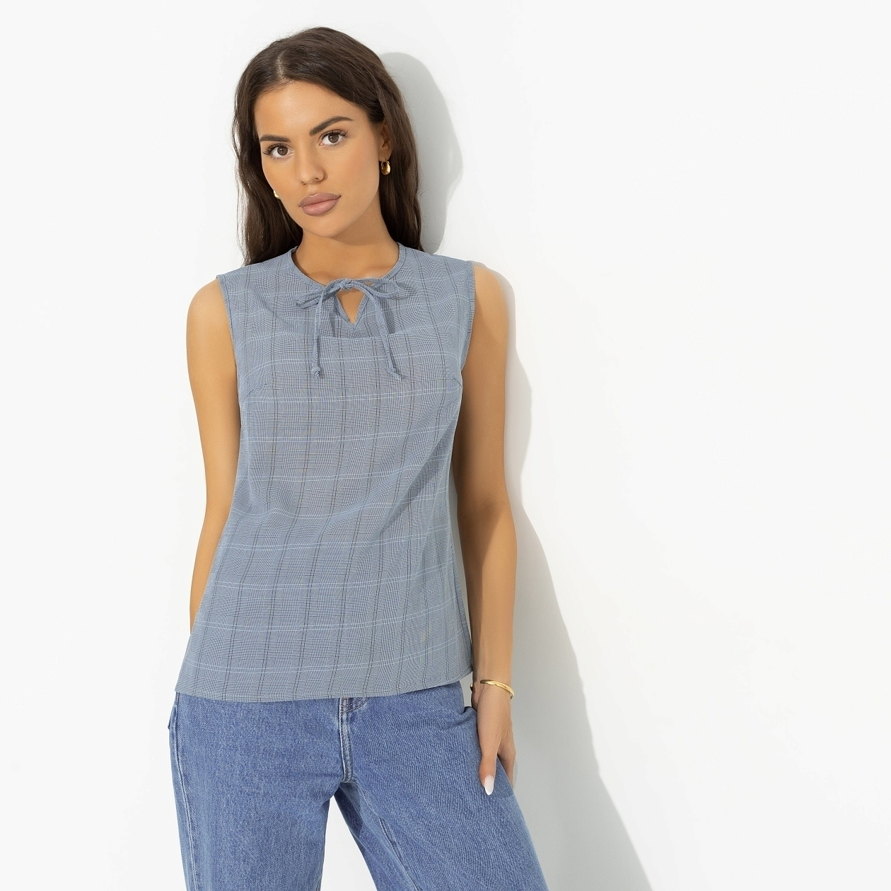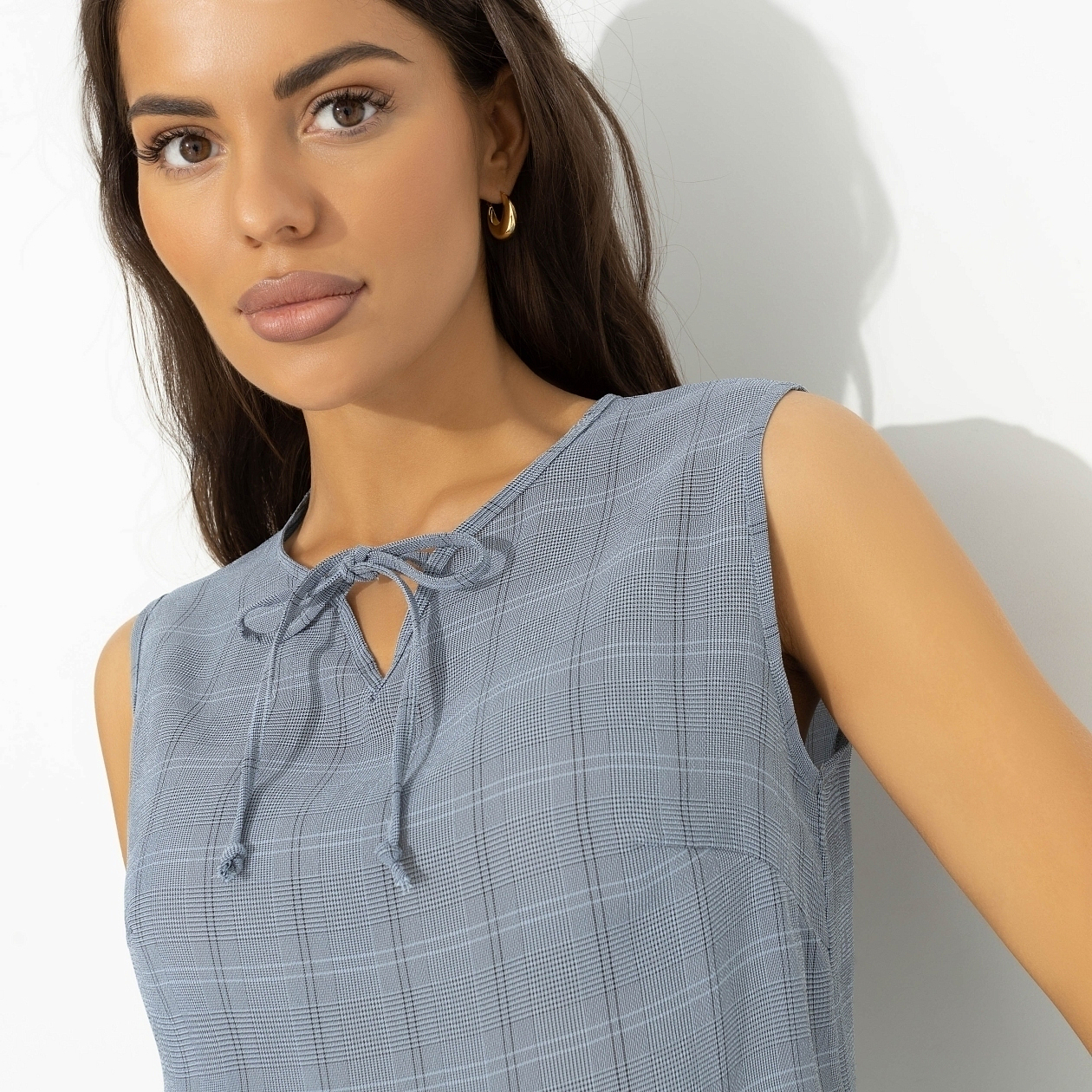 Блуза с выточками «Легкое настроение (cage)» — это великолепный выбор для женщин, стремящихся к непринуждённому стилю и комфорту. Выполненная из блузочной ткани «клетка», она идеально подходит для летнего отдыха и прогулок на свежем воздухе. Эта женская блуза без рукавов прямого силуэта с тонкими завязками в зоне декольте добавит нотку игривости и романтики в ваш образ. Закажите эту блузу оптом и подарите своим клиентам возможность ощутить лёгкость и воздушность, с которой каждый день станет праздником.