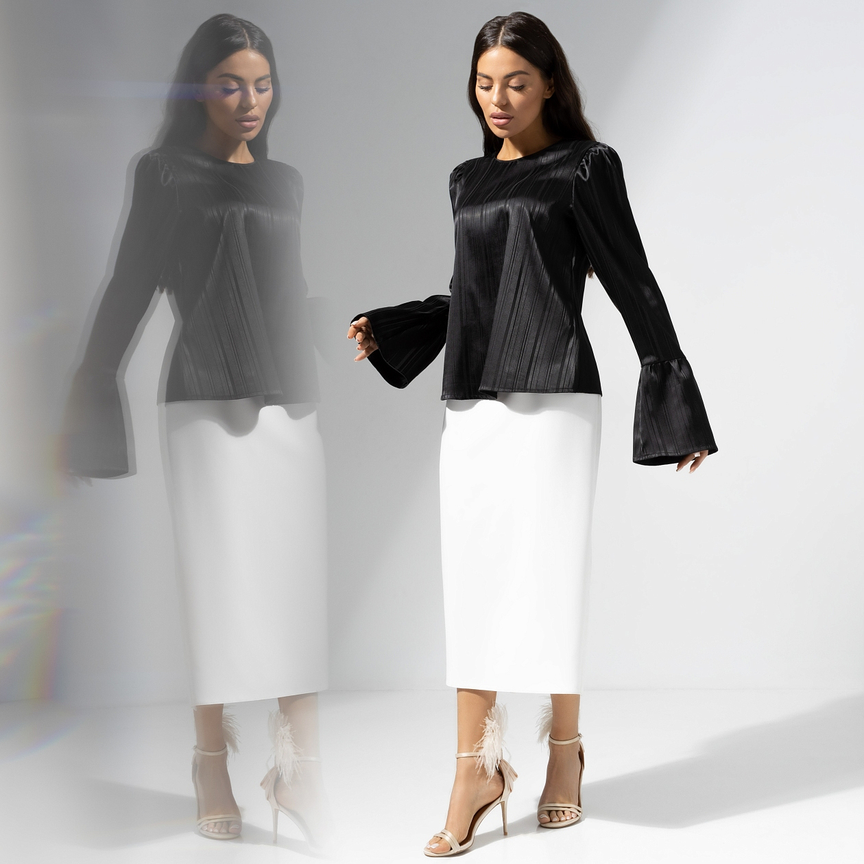 Йога по утрам, два стакана теплой воды с лимоном и минимум 30 минут чтения в день – всё для того, чтобы стать лучшей версией себя. С каждым днем ты чувствуешь больше энергии. Появляется настроение наряжаться. Выбирай блузу CHARUTTI в элегантном черном цвете на пути самосовершенствования. Блуза прямого кроя с удлиненными дизайнерскими рукавами. Расклешенная манжетная часть рукава. Изделие имеет акцентную молнию по спинке. Хорошо смотрится в заправленном виде и навыпуск.