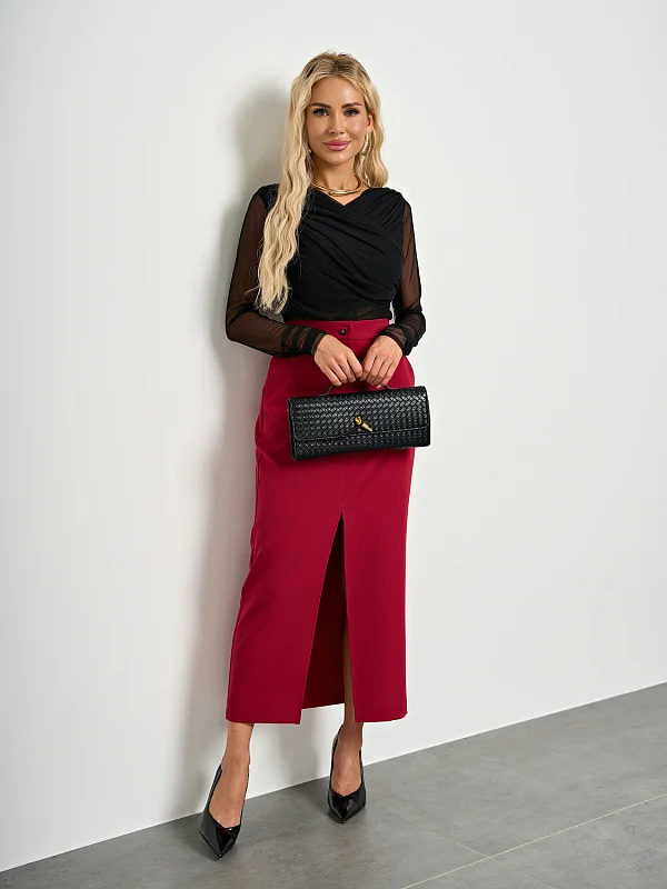 Блуза полуприлегающего силуэта выполнена из мягкой сетки.