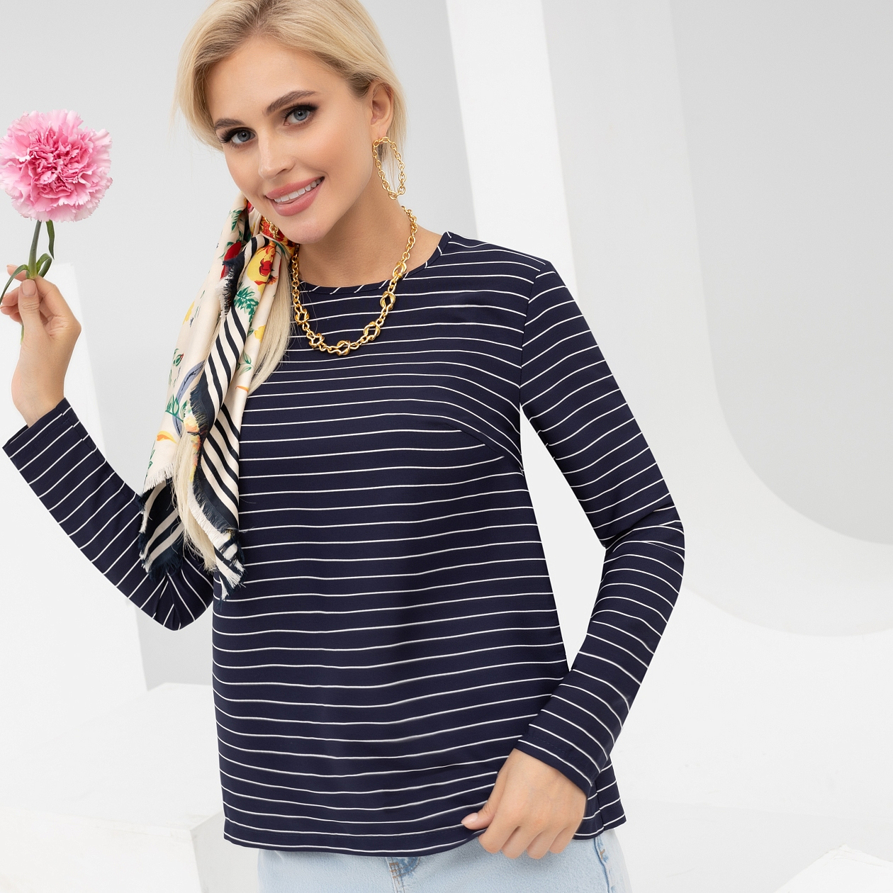 Блуза для тех, у кого всё есть. Для самых взыскательных. Почему? Объясняем. Трендовая полоска, нежная ткань, выигрышная посадка. А главное - сочетается практически с любым образом и стилем. Находка!