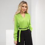 Эта блуза — не просто элемент одежды, это целый манифест вашего стиля. Пояс, прилагаемый к блузе, подчеркивает талию, создавая элегантный и женственный образ. Выбирая эту модель, вы выбираете утонченность и актуальность, ведь свободный силуэт — это тренд, который завоевывает подиумы и сердца модниц по всему миру. Купив эту блузу оптом, вы сможете предложить своим покупателям не только модное, но и практичное решение, которое подойдет для любого случая.
