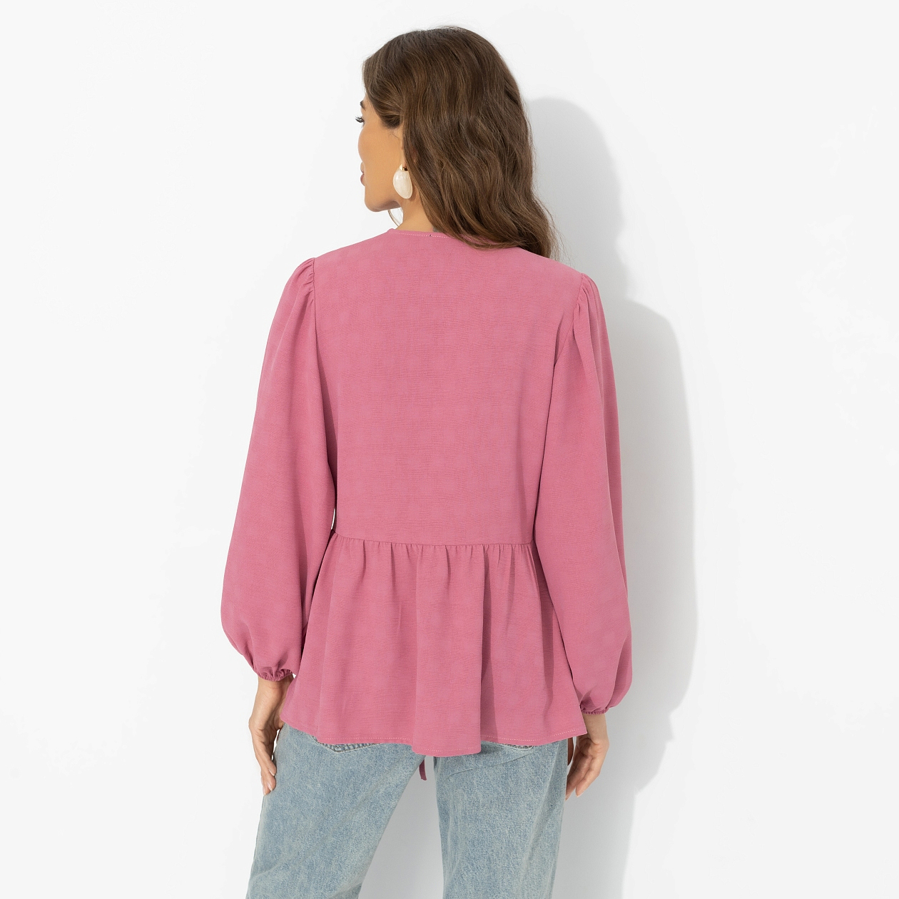 Этот оттенок распускается, как лепесток в тёплом утреннем свете. В нём есть живая цветочность – не наивная, а чувственная, взрослая, с лёгкой нотой флирта. Твой образ будто начинает расцветать прямо в движении. Свободный фасон с мягкой линией талии легко подстраивается под ритм дня, и ты можешь позволить себе лишний кусочек торта. Объёмные рукава усиливают романтичную выразительность.