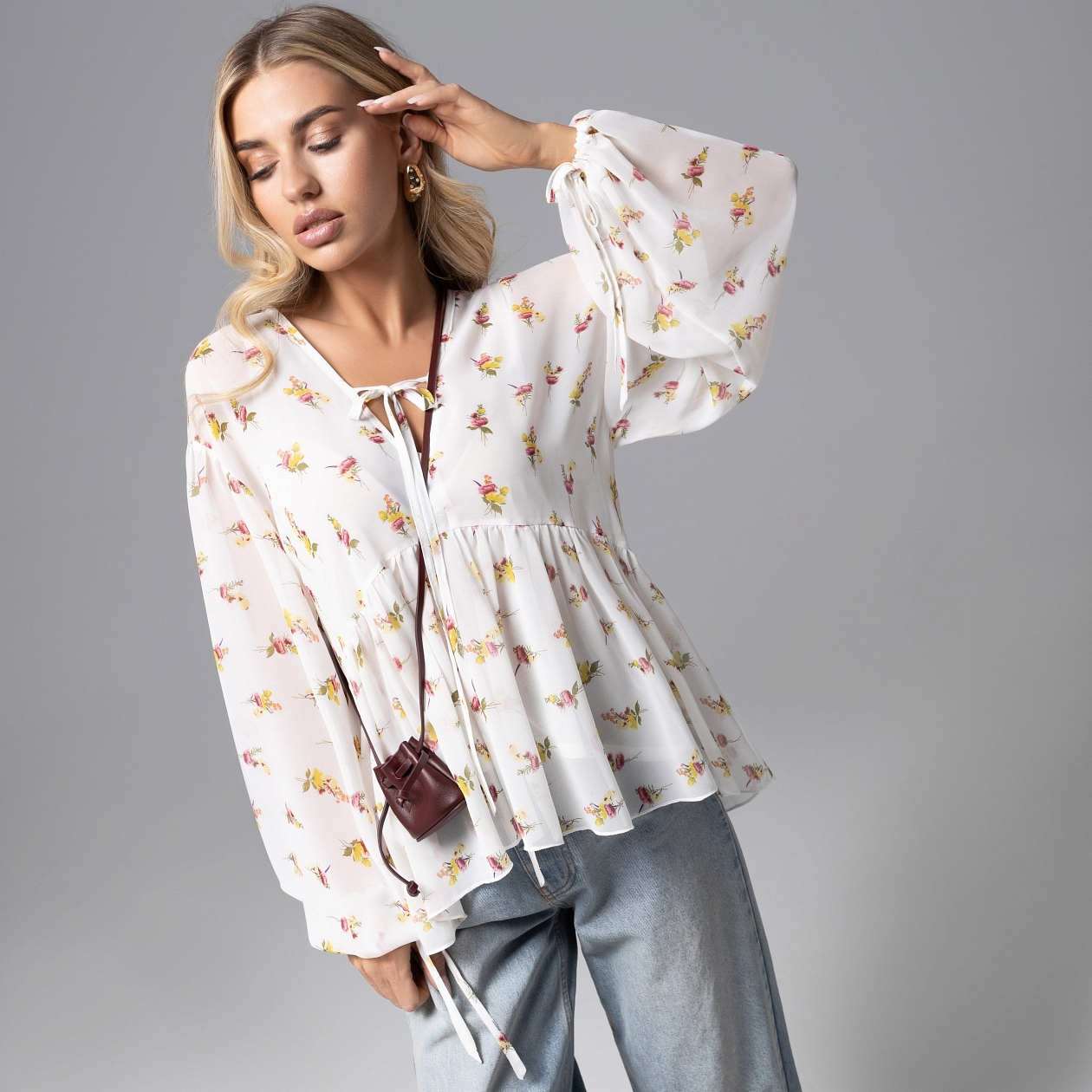 Boho возвращается! После эпохи структурного минимализма позвольте себе проявляться ярко. Это роскошь нового времени. Блуза в цветок в изумительном объеме выглядит не иначе, как восторг. Воздушная и невесомая, она создана, чтобы покорять. Блуза свободного кроя. Изделие хорошо смотрится на любом типе фигуры. Зона декольте, зона спинки и рукава оформлены тонкими завязками. Изделие с подкладом.