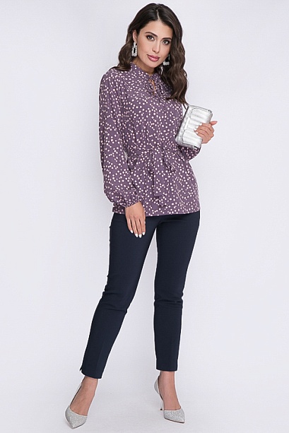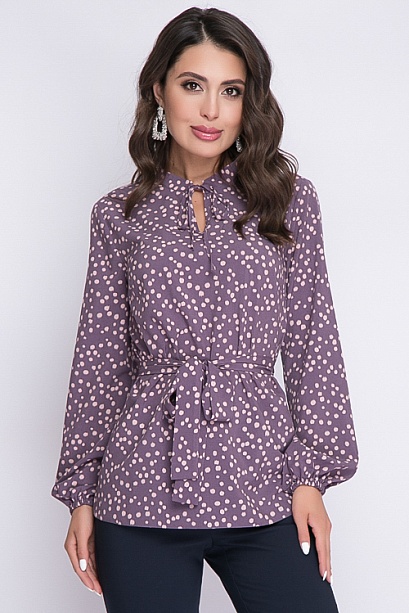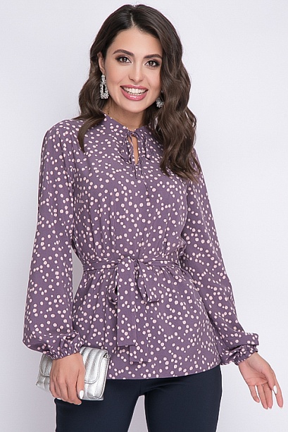 Блузка свободного силуэта из текстильного полотна в горох.В комплекте пояс.
