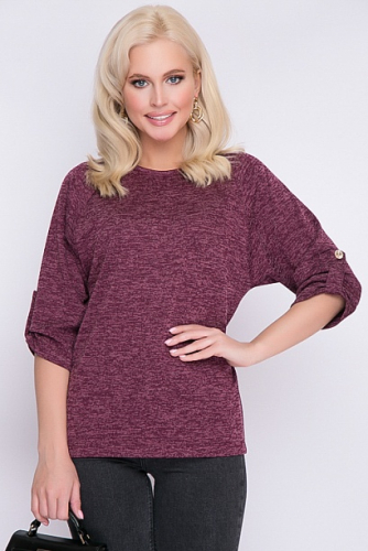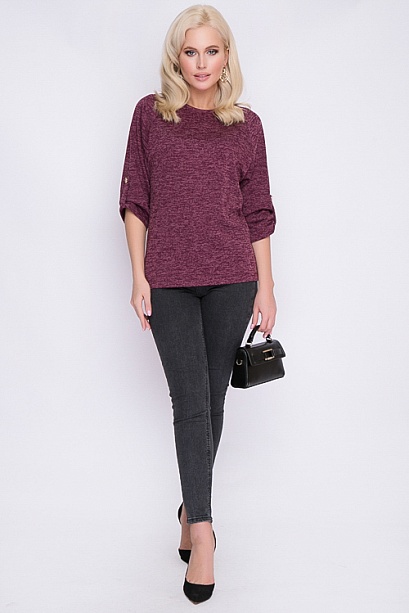 Блузка из меланжевого трикотажа свободного силуэта.Рукав реглан с патой.