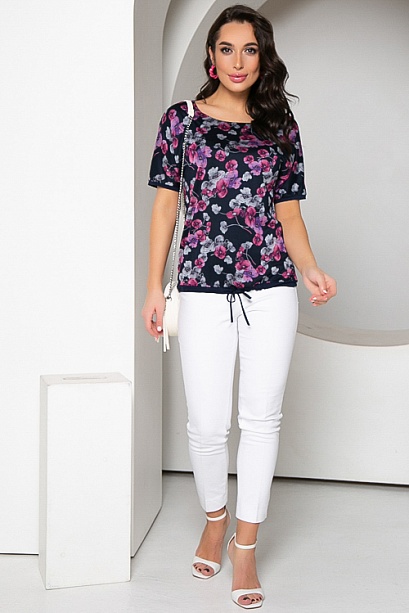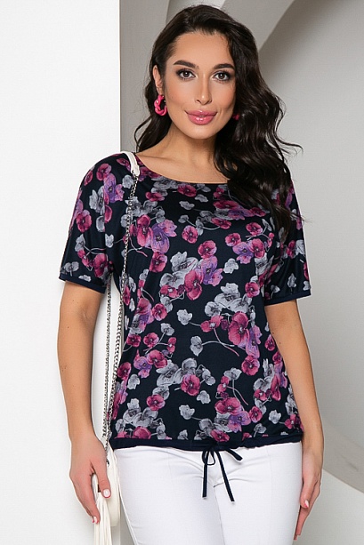 Комбинированная блузка из вискозного трикотажного полотна свободного силуэта с цельнокроеными рукавами.Низ блузки на кулиске.