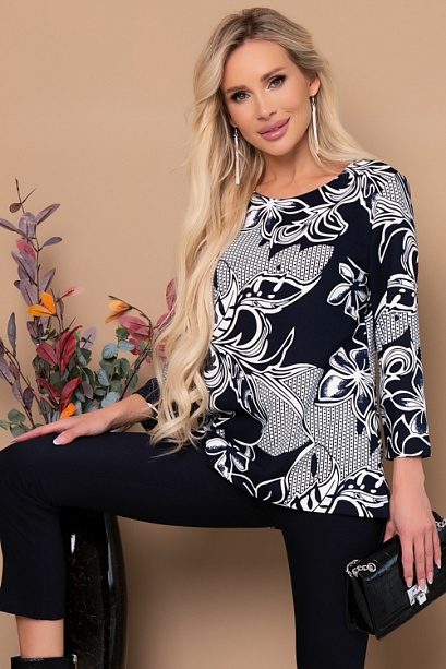 Блуза туника свободного силуэта с разрезами в боковых швах из трикотажного полотна.